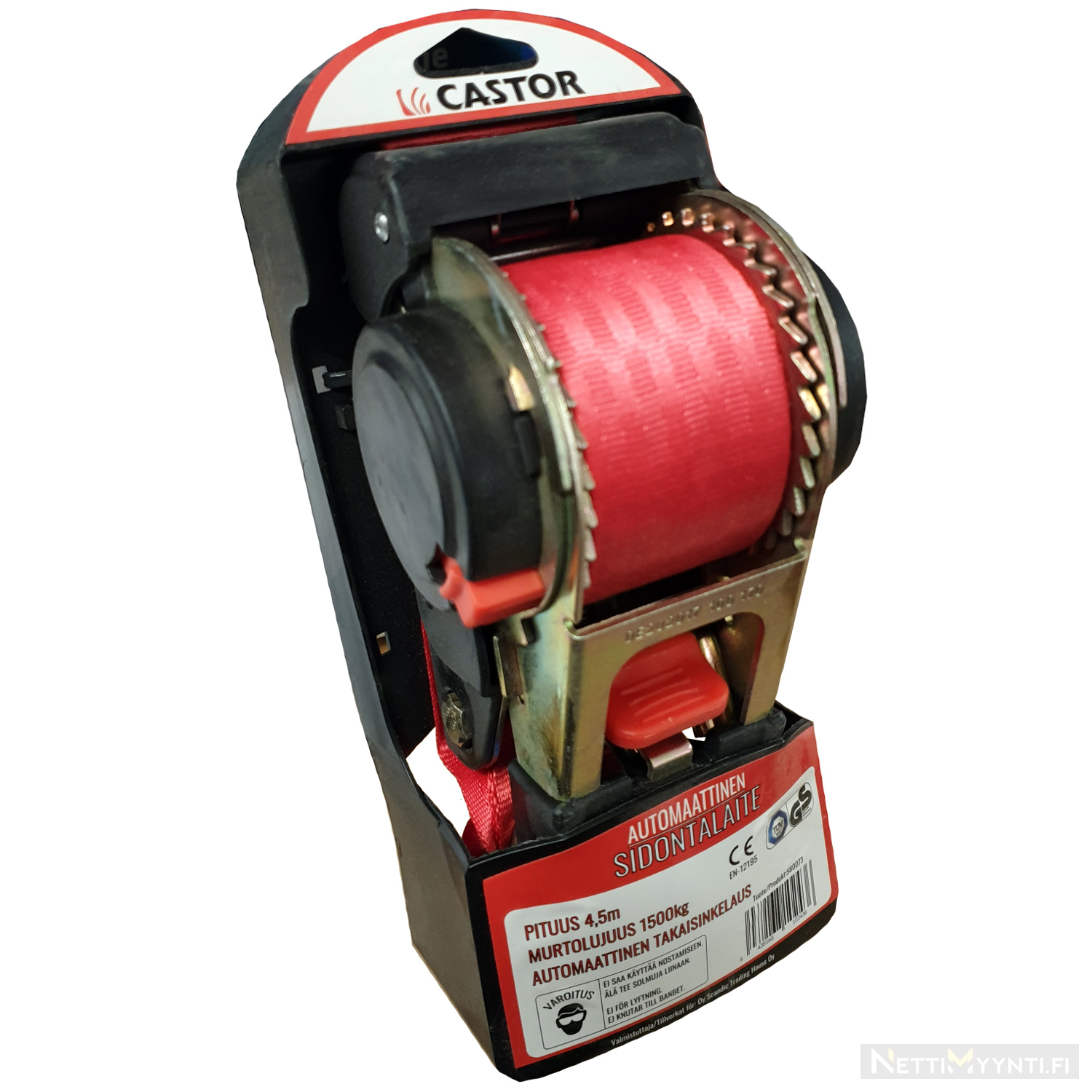 Automaattinen kuormaliina. Pituus 4,5m, leveys 50mm. Murtolujuus 1500kg. Sidontakapasiteetti 750kg. TUV/GS -hyväksytty.