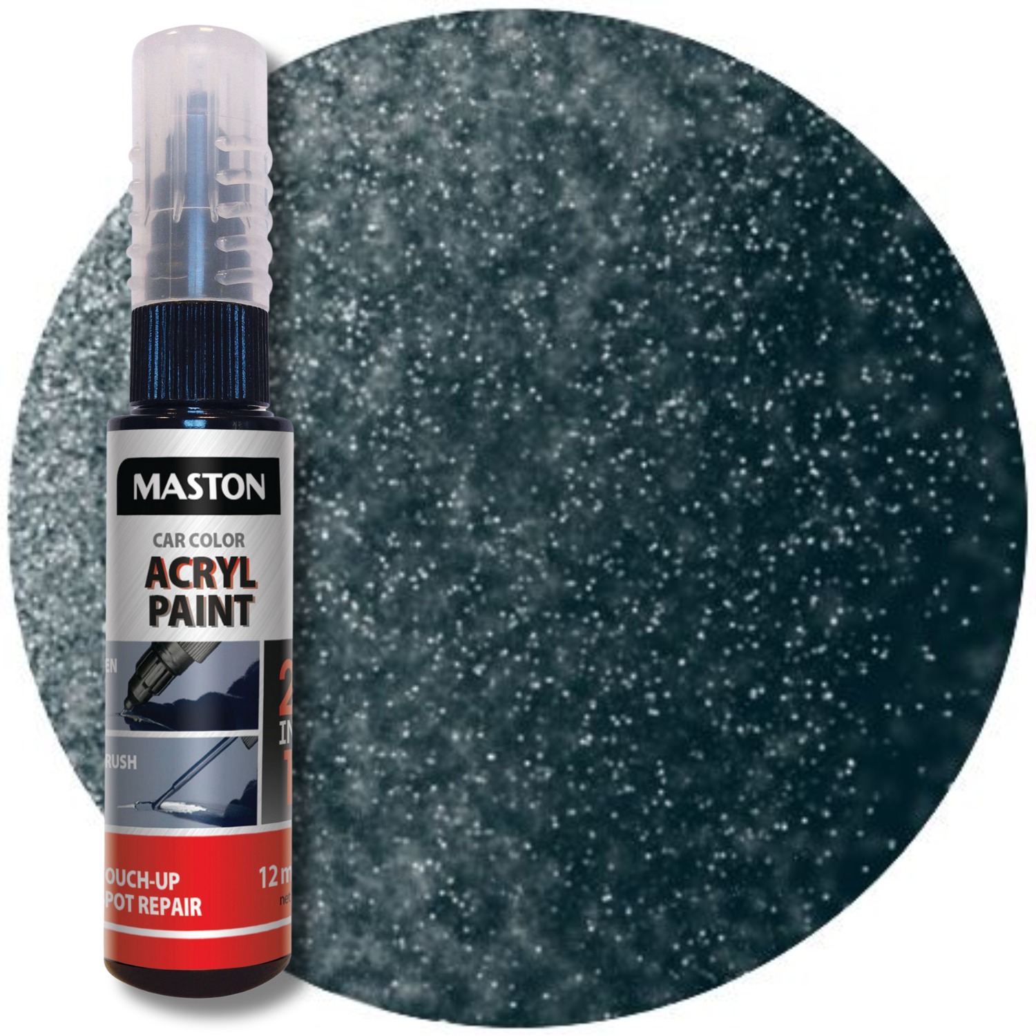 Maston Touch-up on korkealuokkainen akryylimaali kätevässä 12 ml pensselipullossa pieniin maalipinnan korjauksiin.