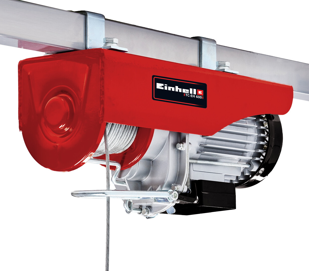 Sähkökäyttöinen vaijerinosturi kuormien nostamiseen ja laskemiseen suljetuissa tiloissa. Maksiminostovoima 300 kg ja taljan kanssa 600 kg.