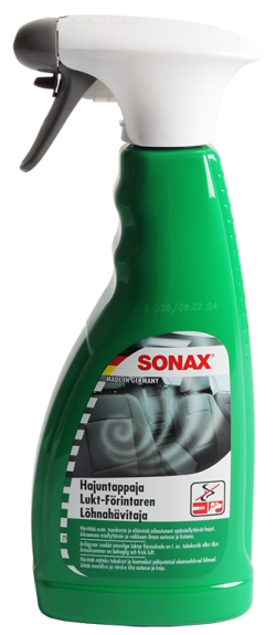 SONAX Hajuntappaja poistaa hetkessä tupakoinnista, lemmikkieläimistä, hikoilusta tai esim. ruoan aiheuttamat epämiellyttävät hajut. Tuote ei peitä, vaan poistaa hajut. Jättää miellyttävän raikkaan tuoksun.