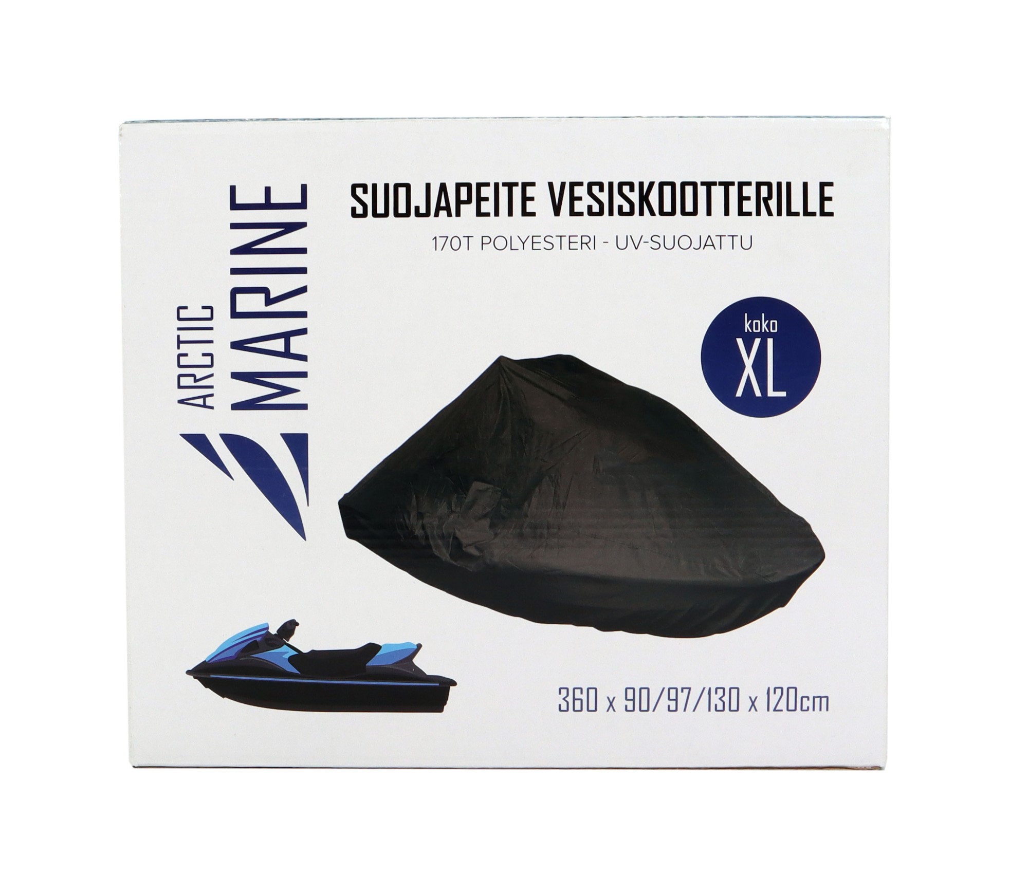 Vesiskootterin suojapeite säilytyksen ajaksi. Suojaa auringonsäteilyltä, lialta ja vedeltä. Materiaali: 170T Polyesteri. UV-suojattu.