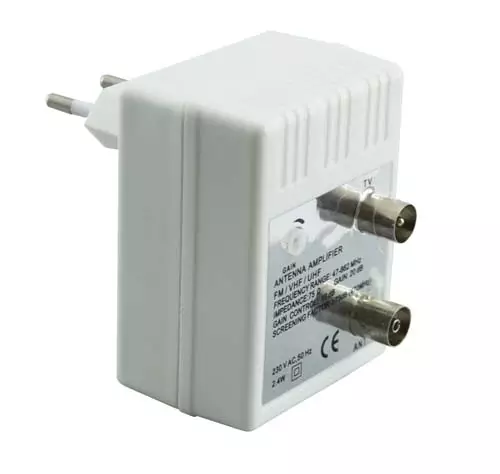 Suoraan pistorasiaan asennettava antennivahvistin. Säädettävä teho.