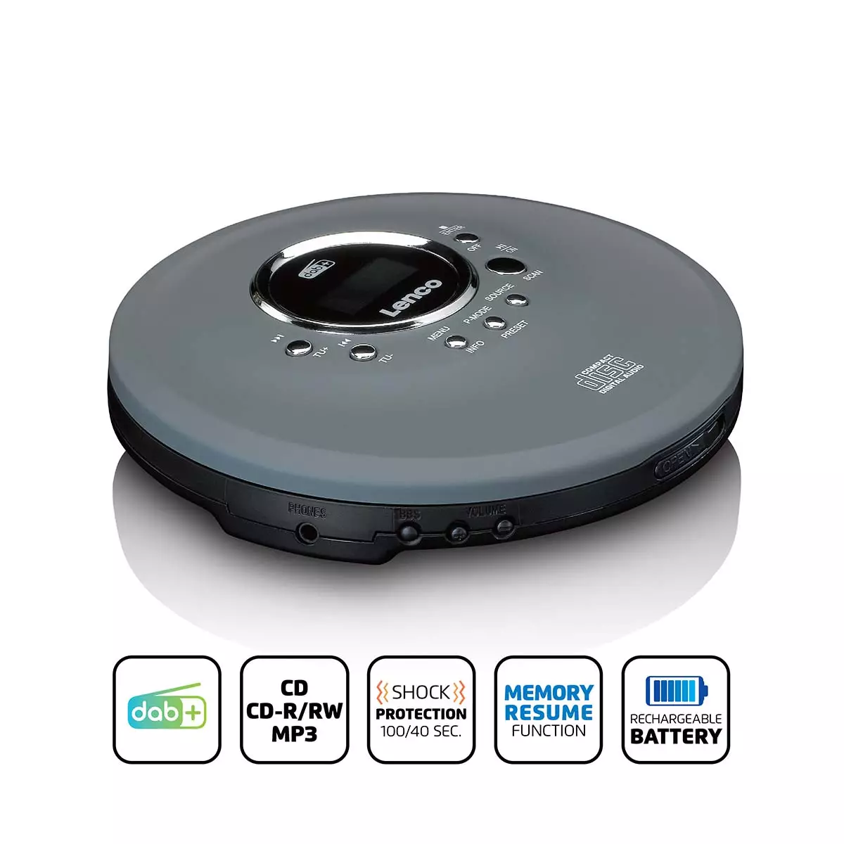 Discman, jossa on DAB+ FM-radio ladattava akku Harmaa
