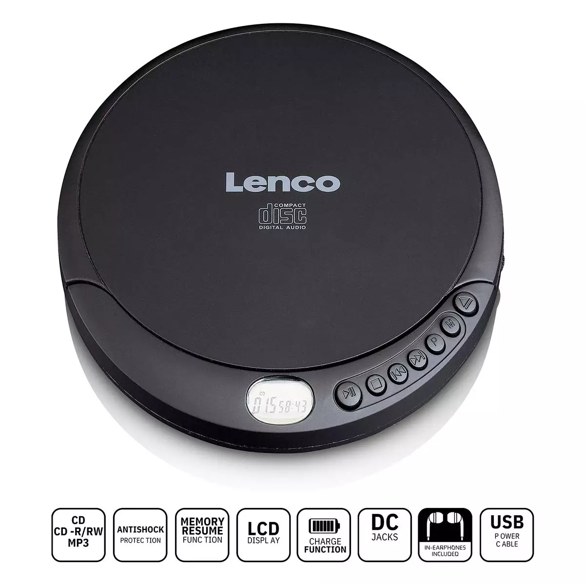 Lenco CD-010 on kätevä kannettava CD-soitin. Siinä on selkeä LCD-näyttö ja helppokäyttöiset painikkeet.