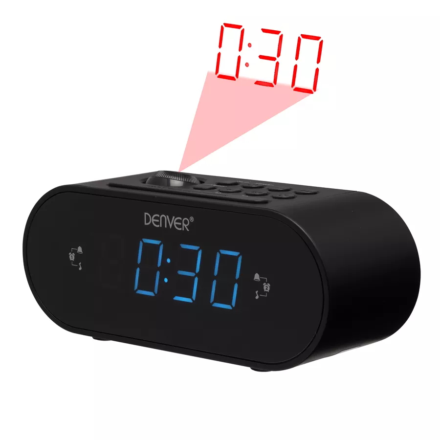 Monipuolisilla toiminnoilla varustettu kelloradio herättää aamuun suosikkiradiokanavasi ohjelmalla tai kellon äänimerkillä. Kellonaika heijastuu seinälle