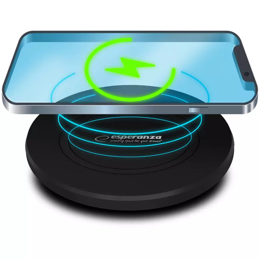 Esperanza 15W langaton laturi tarjoaa nopean ja vaivattoman latausratkaisun langattomalla latausteknologialla varustetuille laitteille, kuten älypuhelimille. Aseta vain puhelin laturin päälle aloittaaksesi latauksen automaattisesti. Laturissa on sisäänrakennettu ylivirta-, ylijännite- ja lämpösuojaus.