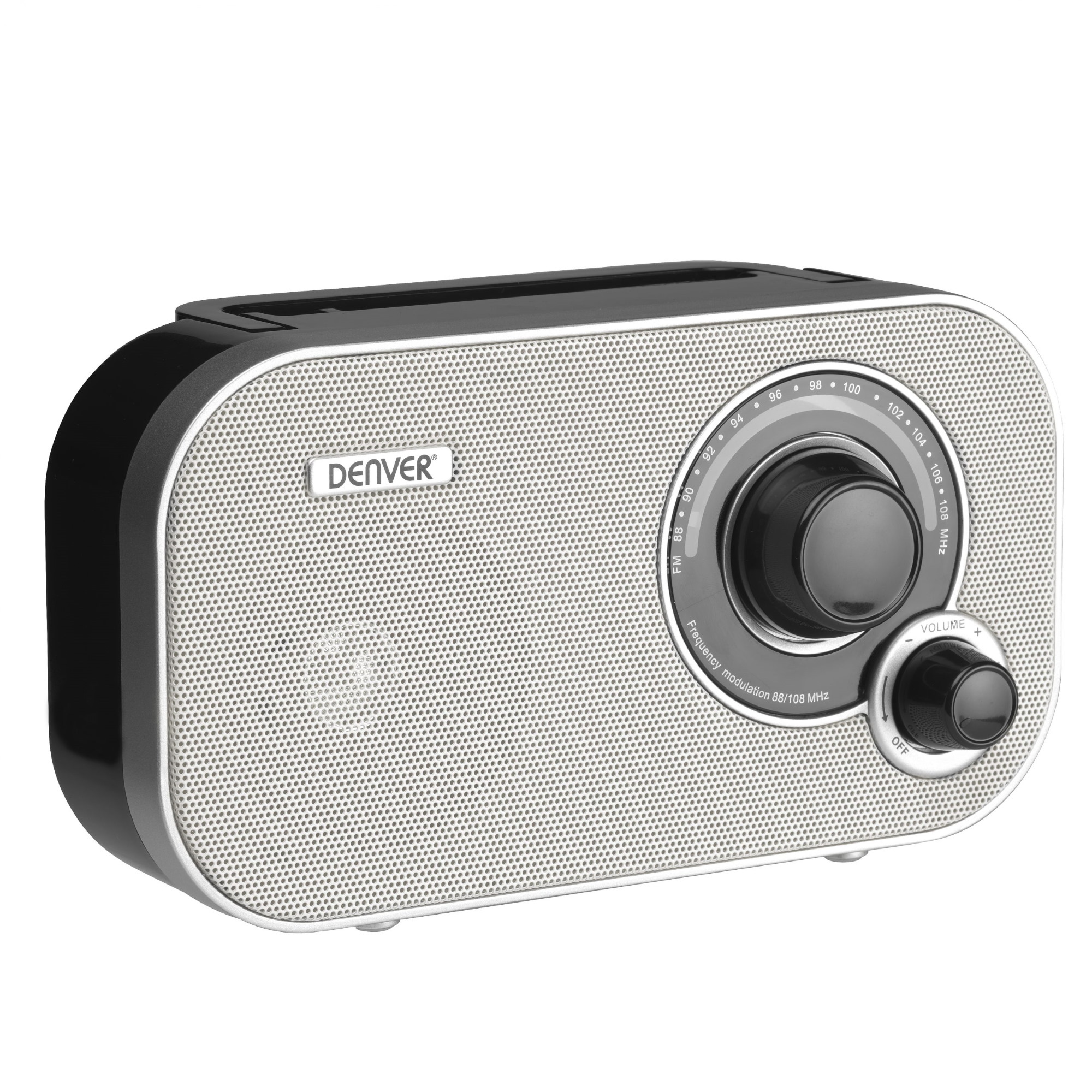 Denver Radio on varustettu analogisella virittimellä. FM-radio on käytettävissä verkkovirralla tai paristoilla (paristot ei sis.).