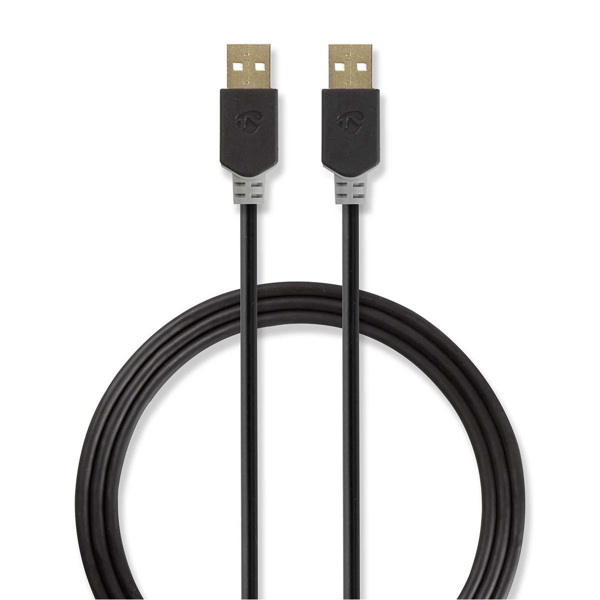 USB kaapeli | USB 2.0 | USB-A Uros | USB-A Uros | 480 Mbps | Kullattu | 2.00 m | Pyöreä | PVC | Antrasiitti | Laatikko