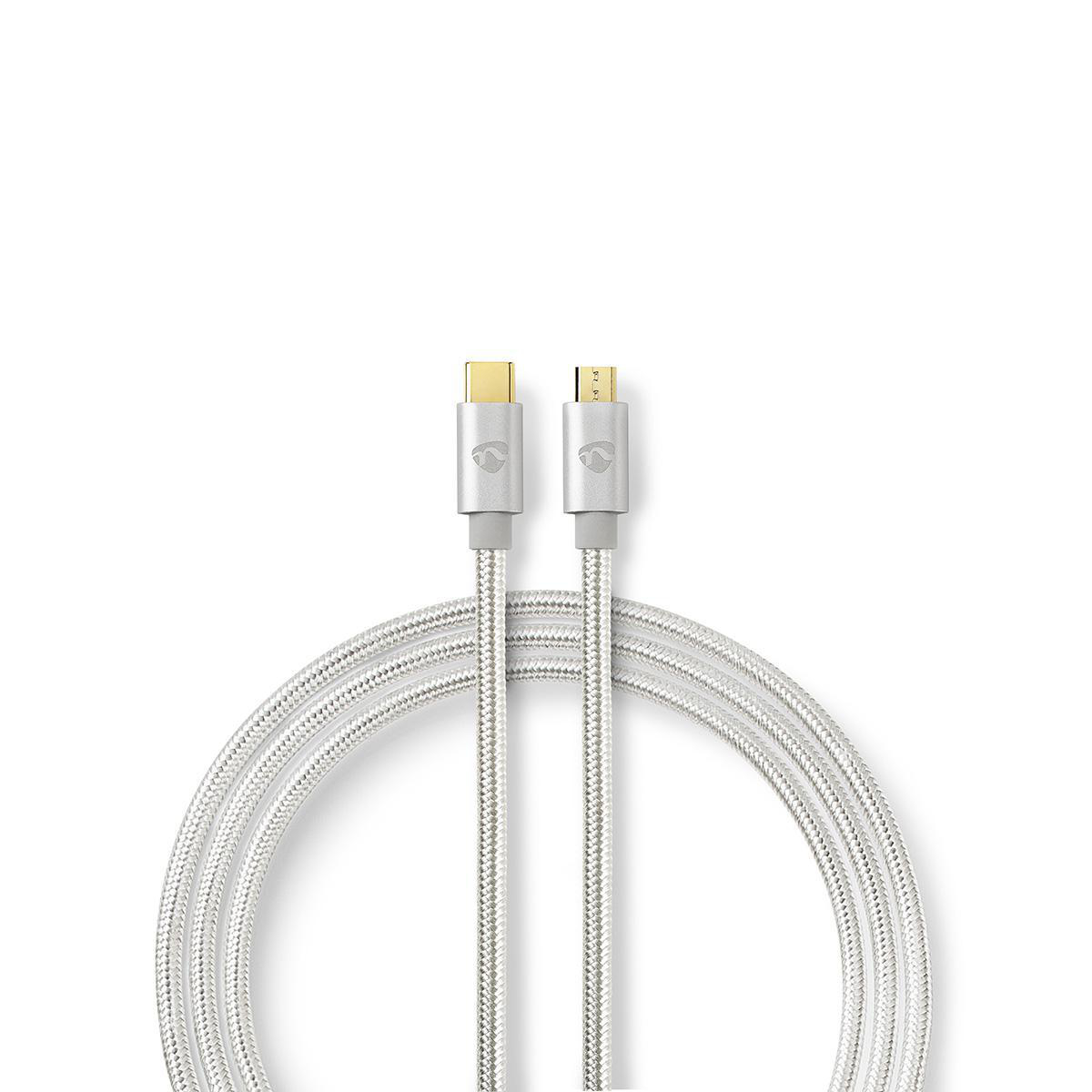 USB kaapeli | USB 2.0 | USB-C Uros | USB Micro-B Uros | 10 W | 480 Mbps | Kullattu | 3.00 m | Pyöreä | Nailon / Punottu | Alumiini | Laatikko kannella ja ikkunalla