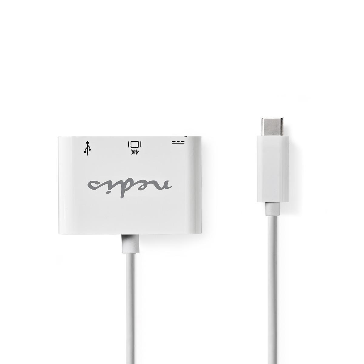 USB N Moniporttisovitin | USB 3.2 Gen 1 | USB-C Uros | HDMI Ulostulo / USB-A Naaras / USB-C Naaras | 5 Gbps | 0.20 m | Pyöreä | Niklattu | PVC | Valkoinen | Laatikko