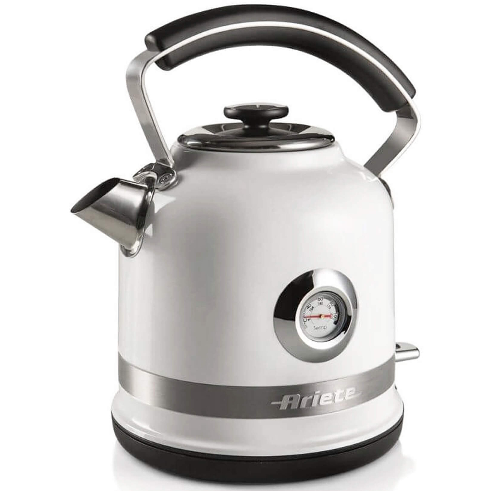 Tyylikäs retrohenkinen vedenkeitin modernilla ominaisuuksilla ja kivoilla yksityiskohdilla.