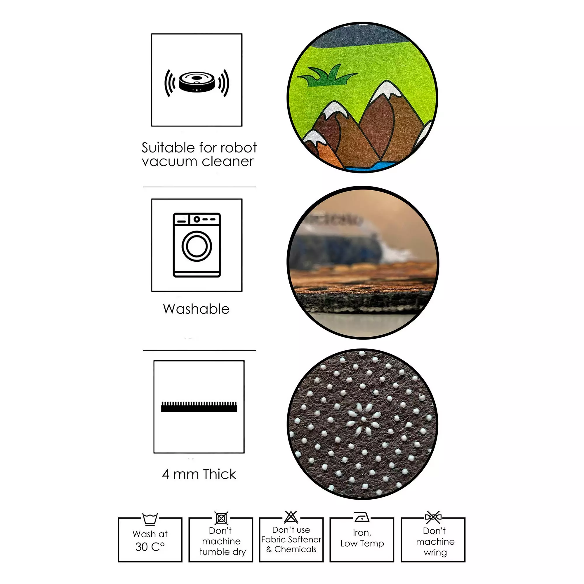 Konepestävän suunnittelumme ansiosta maton puhtaana pitäminen on vaivatonta. Pese vain hellävaraisilla pesuohjelmilla 30-40 asteessa saadaksesi raikkaan ja moitteettoman ilmeen. Vältä voimakkaita kemikaaleja ja kemiallista pesua säilyttääksesi tuotteen laadun. Parhaan tuloksen saavuttamiseksi anna maton kuivua ilmassa ja vältä suoraa auringonvaloa haalistumisen estämiseksi.