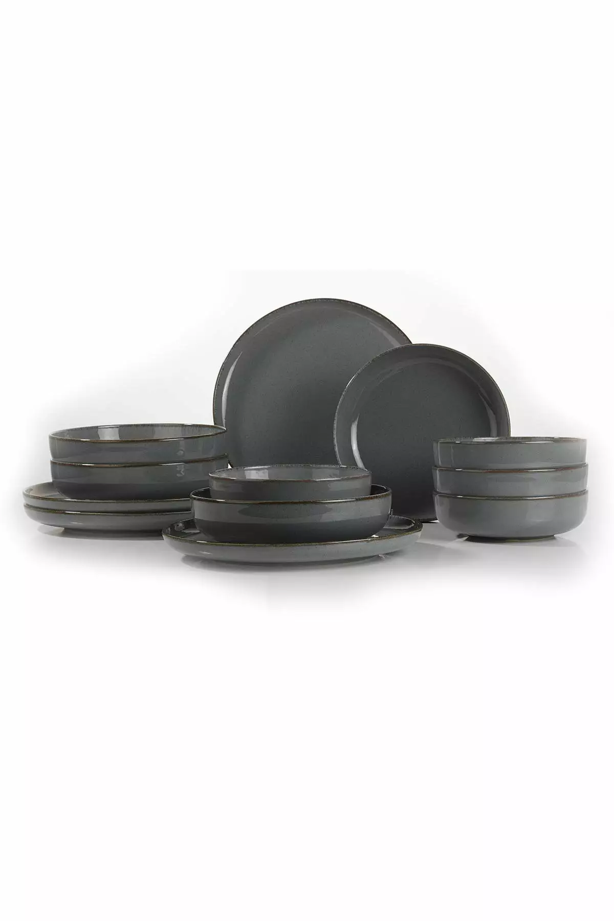 12-osainen Harmaa Posliiniastiasto - Kestävää Laatua ja Tyylikkyyttä - Astianpesukone- ja Mikroaaltouuninkestävä