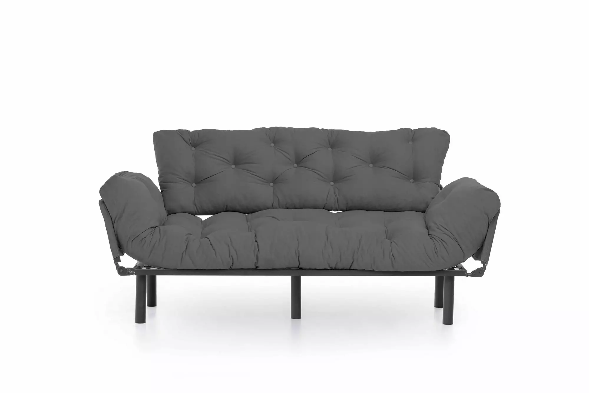 Leveyttä on 185 cm, joten tämä vuodesohva on täydellinen pienempiin asuintiloihin, joissa tilan maksimoiminen on olennaista. Vuodeasennossa se laajenee 225 cm leveäksi, tarjoten runsaasti tilaa rauhallisiin yöuniin. Vankka metallirunko ja muovijalat takaavat kestävyyden ja vakauden, ja maksimikuormituskapasiteetti on 300 kg.