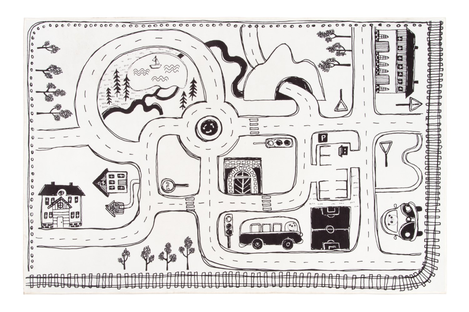 Tyylikäs liikennematto, joka kannustaa leikkimään ja samanaikaisesti toimii hienona sisustusyksityiskohtana lastenhuoneessa. Lasten leikkimatto on helppo pitää puhtaana ja huoltaa.