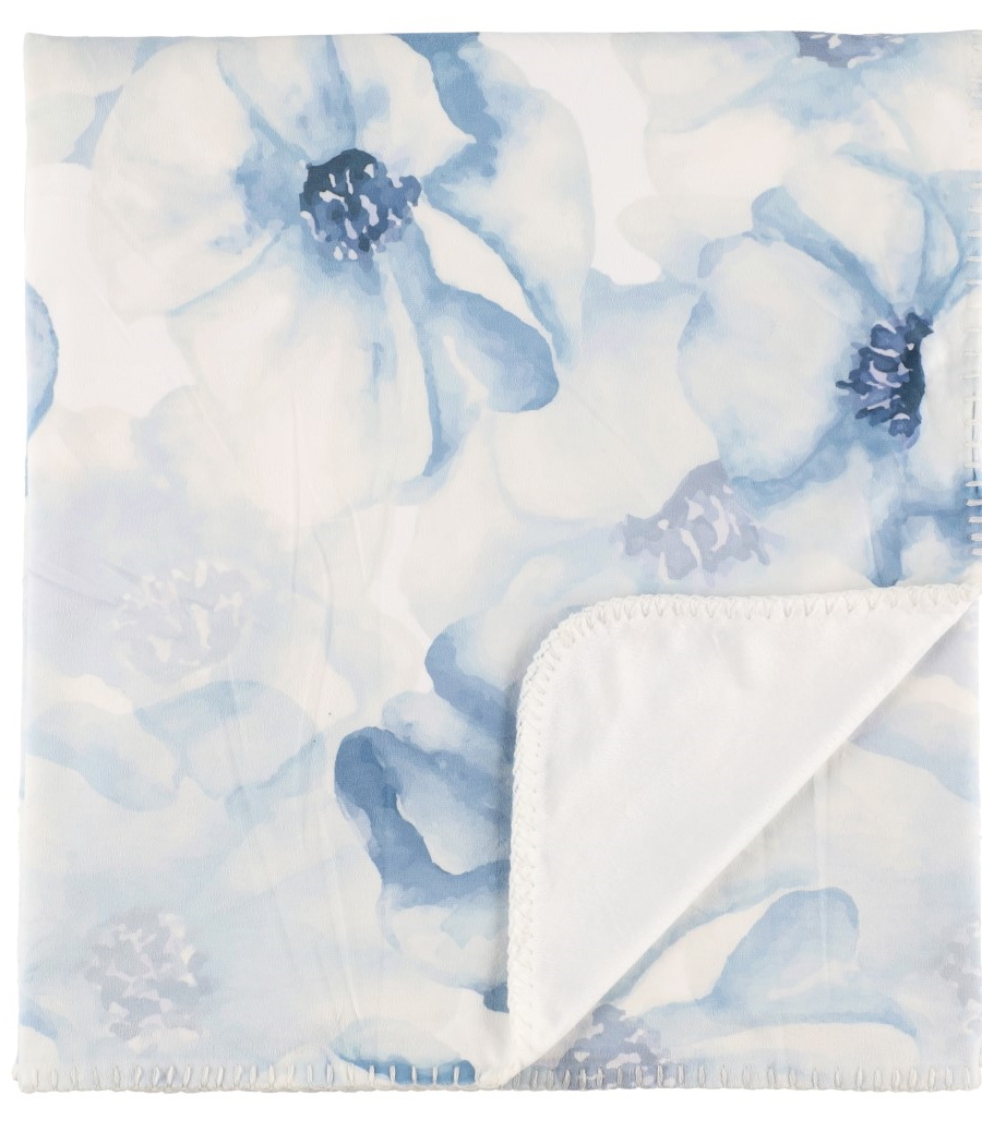 Digipainettua samettia, toinen puoli valkoinen sametti. Kaksinkertainen kangas. Hellävarainen pesu 30°C. Nauhapakkaus.