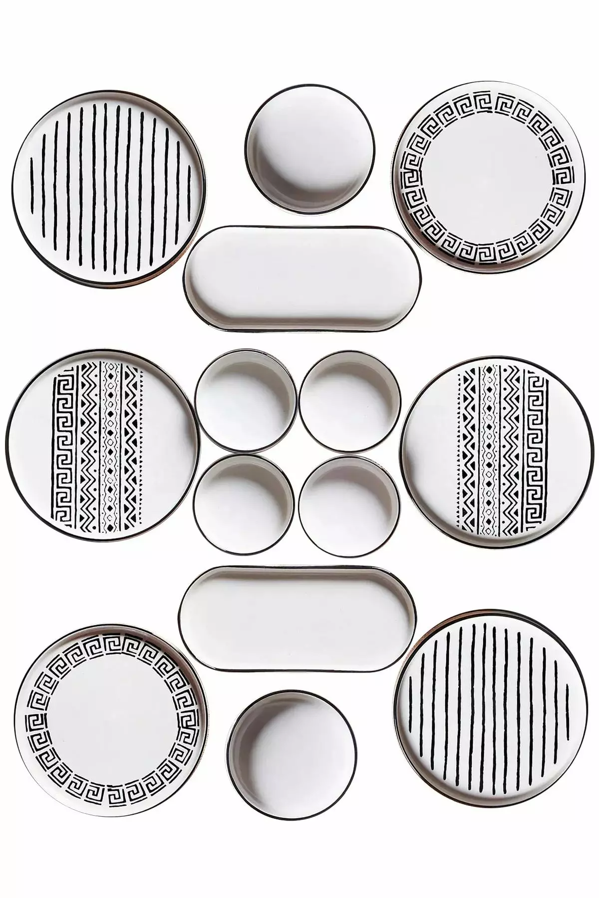 Kuvittele, että aloitat päiväsi kauniisti katetulla pöydällä, jota koristavat tyylikkäät mustavalkoiset keraamiset palat, jotka huokuvat hienostuneisuutta ja tyyliä. Jokainen pala on huolella muotoiltu parantamaan ruokailukokemustasi, jolloin jokainen suupala on nautinnollinen hetki.