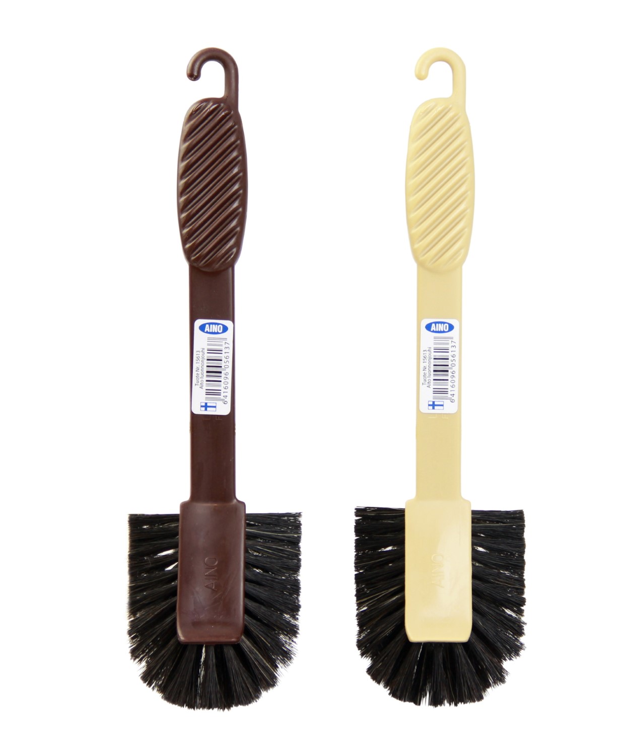 This plastic dish brush with a natural horsehair bristle enables more gentle cleaning of porcelain and crystal dishware. The brush is durable and can withstand strong detergents.