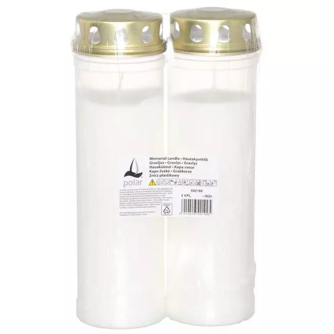 Korkea Polar hautakynttilä tarjoaa pitkän paloajan ja tyylikkään ulkoasun kullanvärisen tuulisuojan ansiosta. Kynttilän korkeus on 24,5 cm ja se palaa noin 152 tuntia, tarjoten pitkäaikaista valoa ja lämpöä muistopaikoille. Kynttilämassan paino on 465 g.
