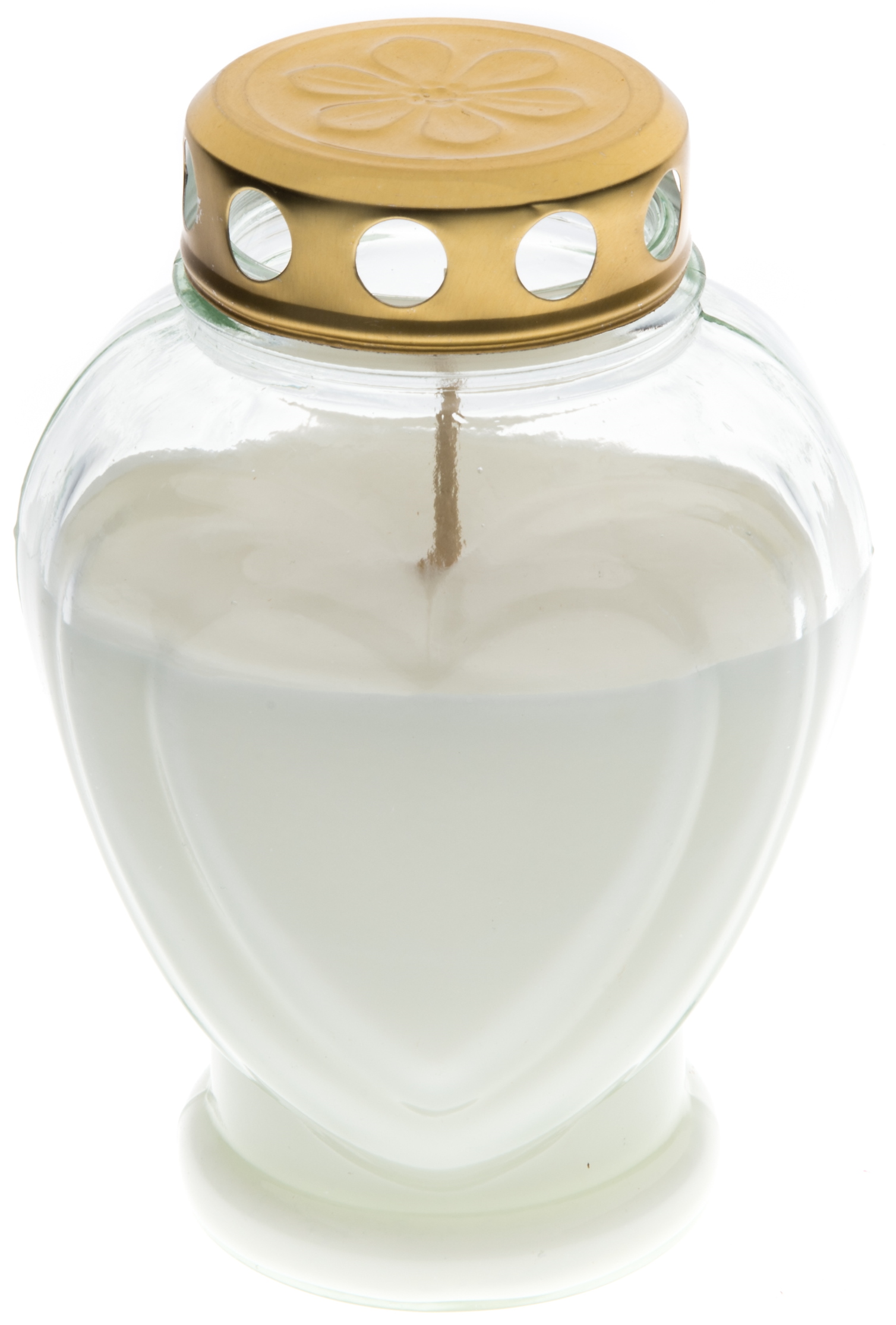 Paloaika n.120h. Lasinen sydämen mallinen hautalyhty, metallisella tuulisuojalla.