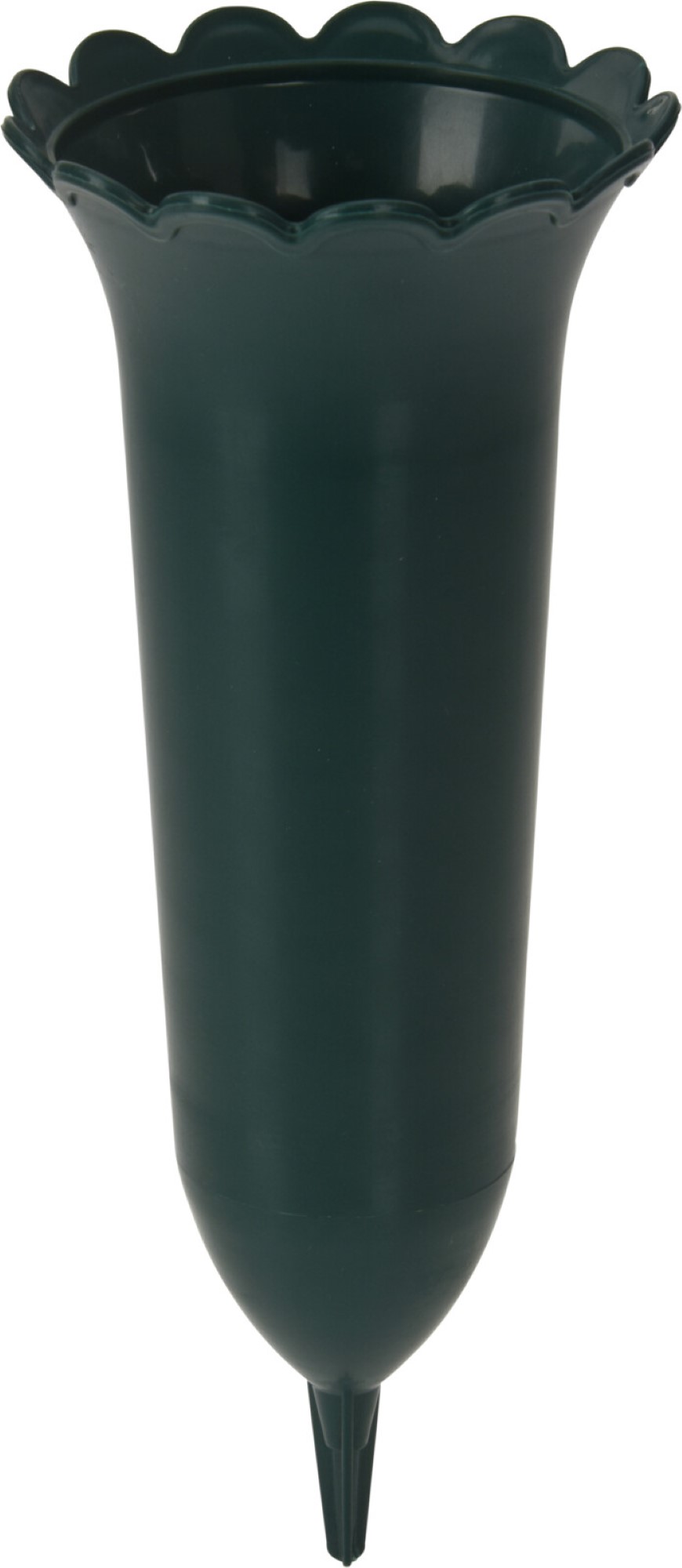 Tumaanvihreä hautamaljakko hautakukille. Korkeus 25 cm.