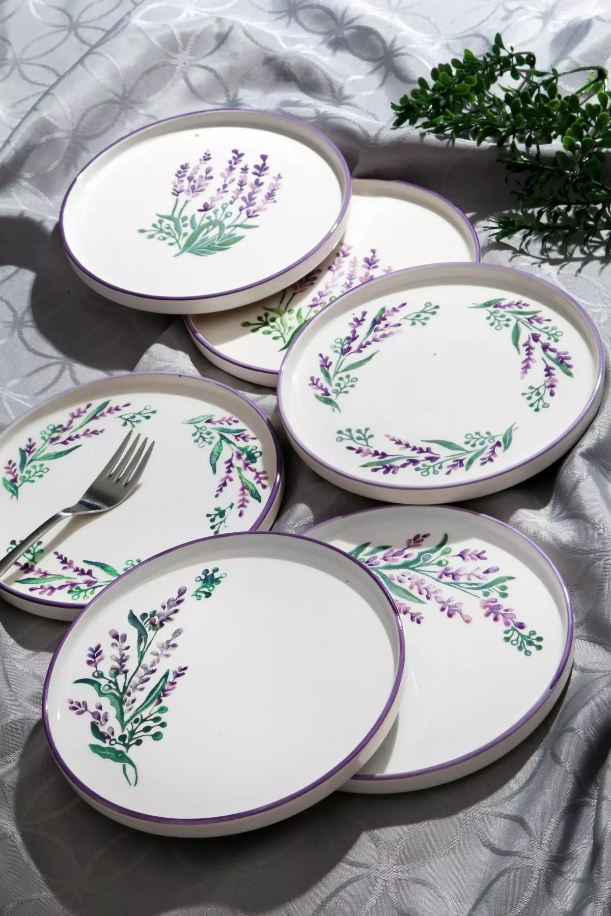 Jälkiruokalautasetti (6 kpl), violetti vihreä valkoinen, 19 cm, käsintehty, kestävä