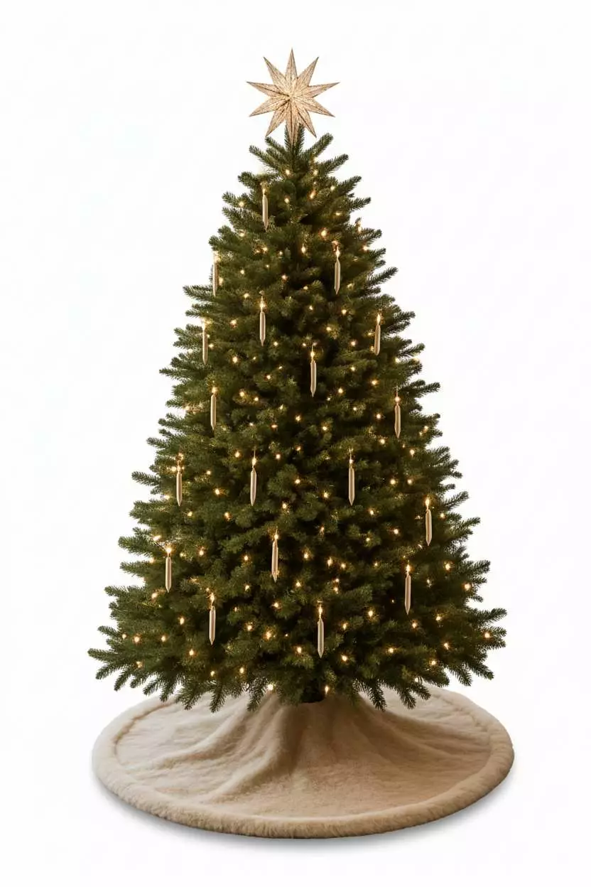Joulukuusen Matto 100% Polyesteri, Beige, 100x100 cm, 6 Nauhaa, Konepestävä 20 °C, Kestävä ja Tyylikäs