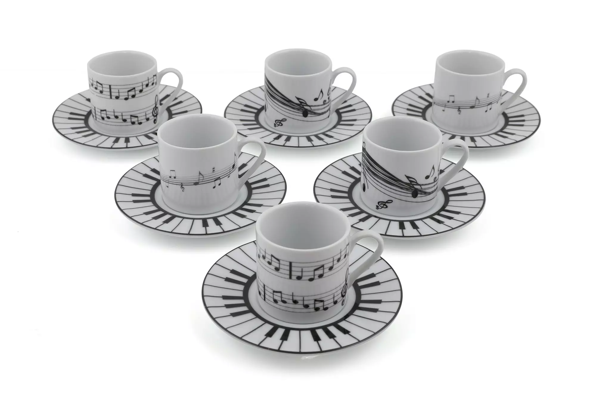 Kahvikuppisetti 12-osainen - Tyylikäs ja Ajaton Muotoilu - 100% Posliini - Astianpesukoneen Kestävä - Valkoinen Musta