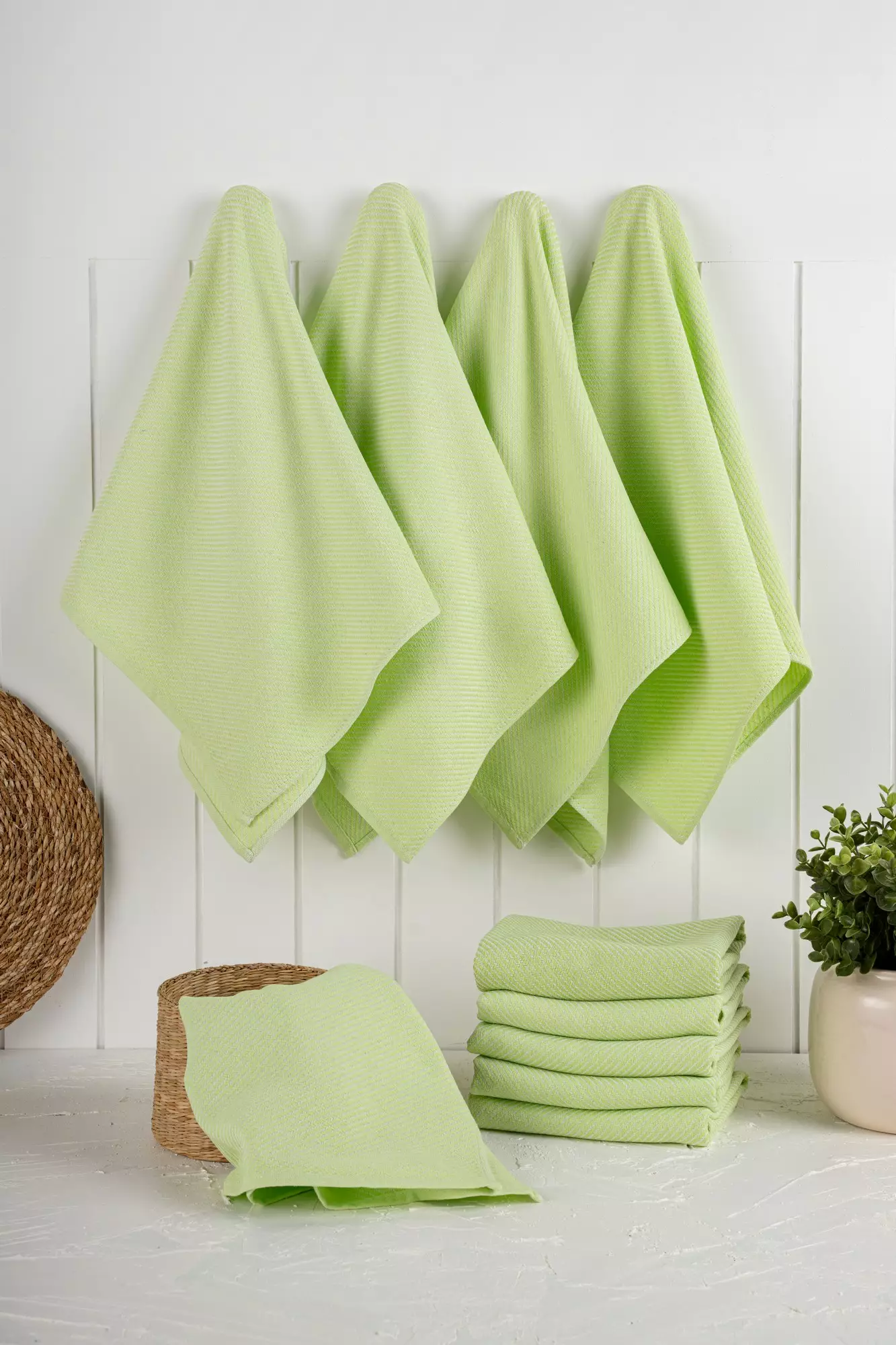 Keittiöpyyhesetti 10 kpl, Pistachio, 90% Puuvilla, 270 gr/m², 43x76 cm, Konepestävä, Silitysmahdollisuus