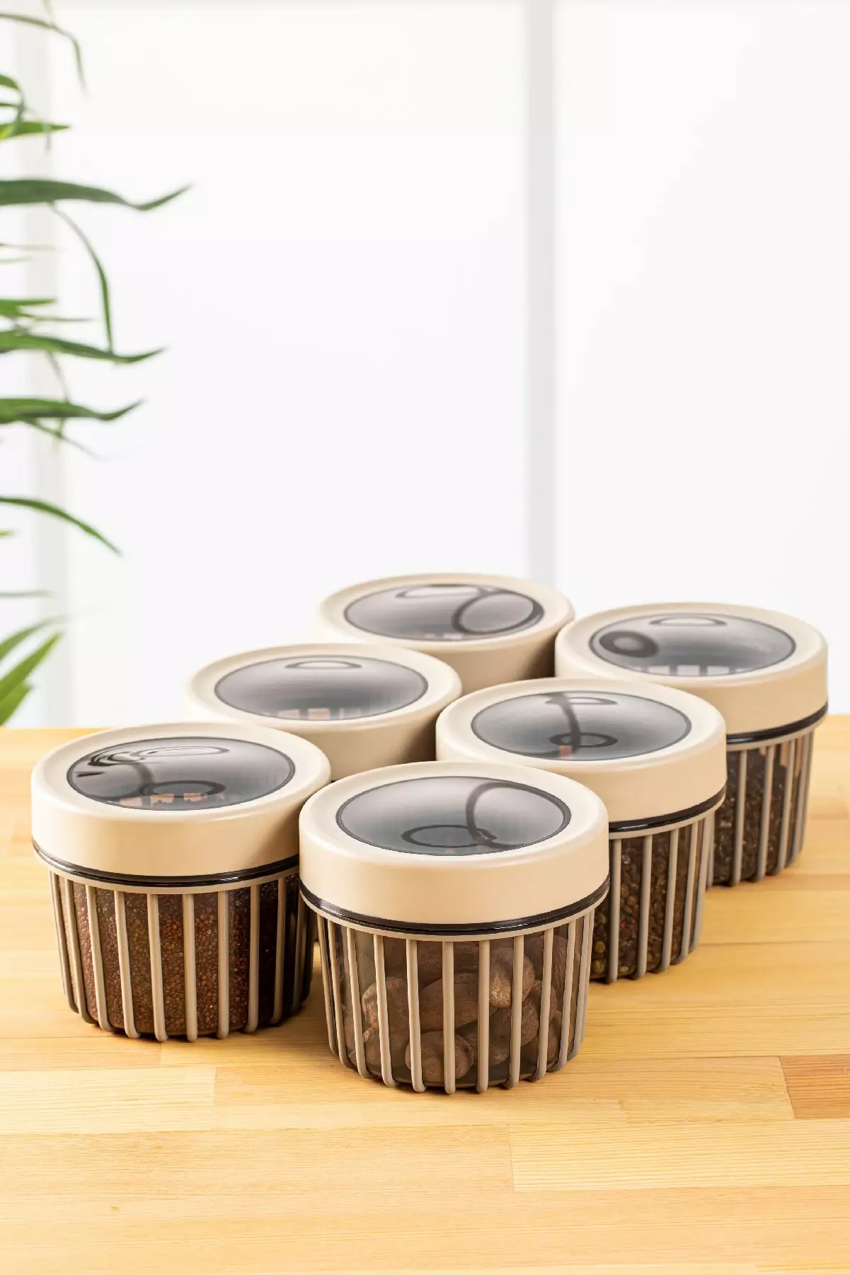Keittiötarvikkeet: Kermanvärinen Säilytyslaatikko 6 kpl - 100% Muovia, 10,5x10,5x9 cm, Astianpesukoneen Kestävä