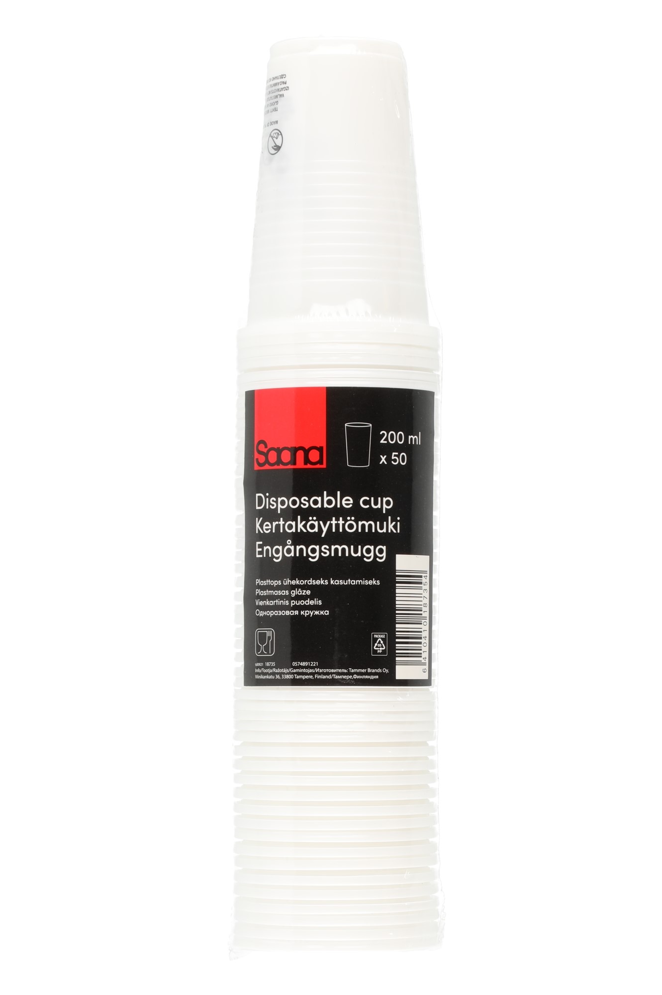 Kertakäyttömuki muovi valkoinen 200 ml 50kpl
