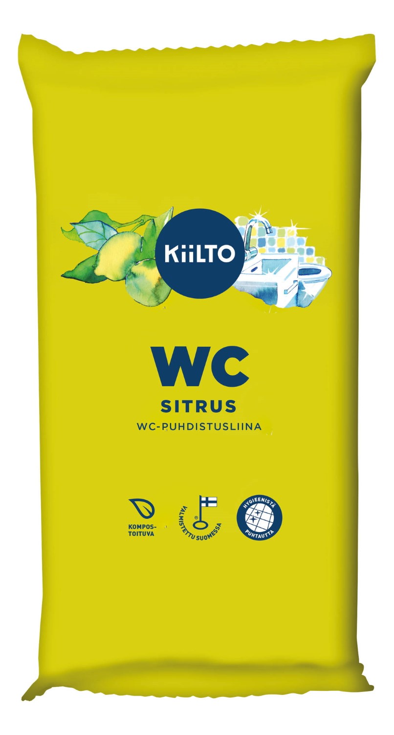 Kiilto WC-puhdistusliinalla puhdistuu kätevästi kaikki WC- ja kylpyhuonetilojen pinnat. Tuotteen koostumus on miedosti hapan, jolloin se poistaa tehokkaasti pisarajälkiä esim. hanoista ja kaakelipinnoilta. Reilun kokoisen liinan avulla pinnat on helppo pitää aina kiiltävän puhtaina. Kiilto WC-puhdistusliinan raikas sitrustuoksu raikastaa puhdistettavan tilan ja WC-tilasi on aina puhdas ja raikas. Liina on kompostoituva, joten sen voi laittaa biojätteeseen.