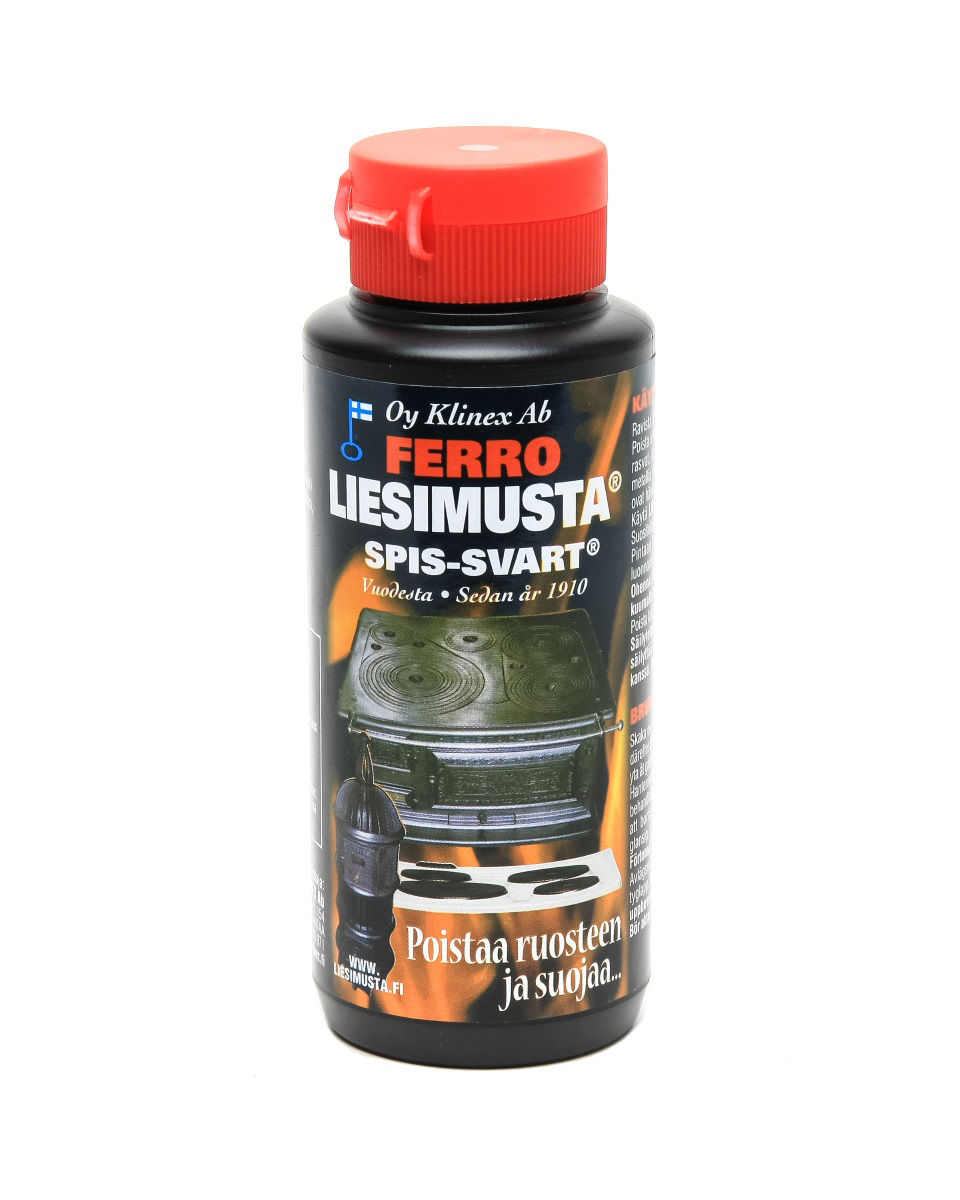 LIESIMUSTA®, Spis-Svart®, on alkuperäinen ja turvallinen teräs- ja valurautapintojen hoitoaine, jota käytetään laajalti niin puuliesitasojen, tulisijojen kuin muiden teräs- ja valurautakohteiden hoitamiseen.