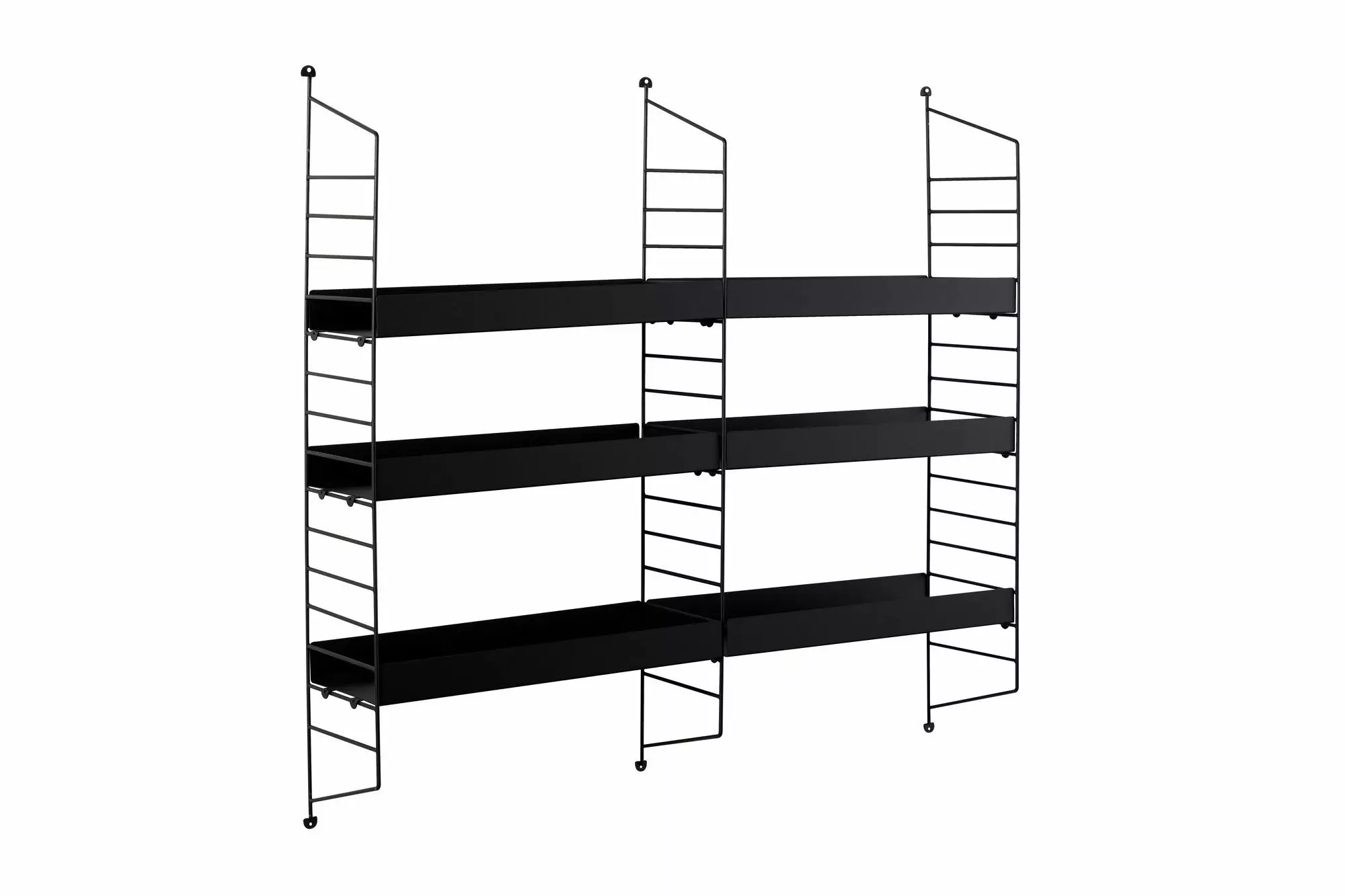 Valmistettu korkealaatuisesta metallista, tämä seinähylly on rakennettu kestämään. Vankka rakenne varmistaa, että esineesi ovat turvallisesti esillä, kun taas tyylikäs musta pinta lisää ripauksen eleganssia sisustukseesi. Sano hyvästit sekaville tiloille ja tervetuloa kauniisti järjestettyyn kotiin.