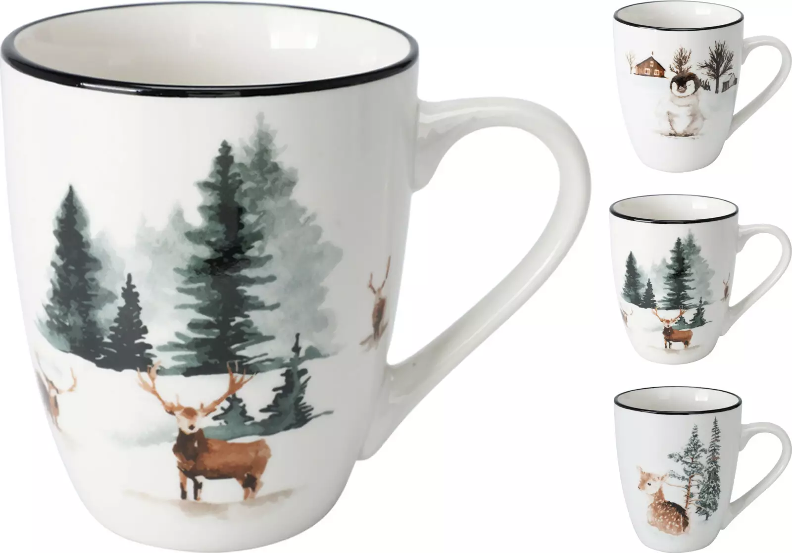 Viehättävä jouluinen posliinimuki, joka tuo juhlakauden tunnelman suoraan aamukahville tai iltateelle. Muki on koristeltu lumisilla joulukuoseilla ja mustalla reunuksella. Tilavuus on 320 ml.
