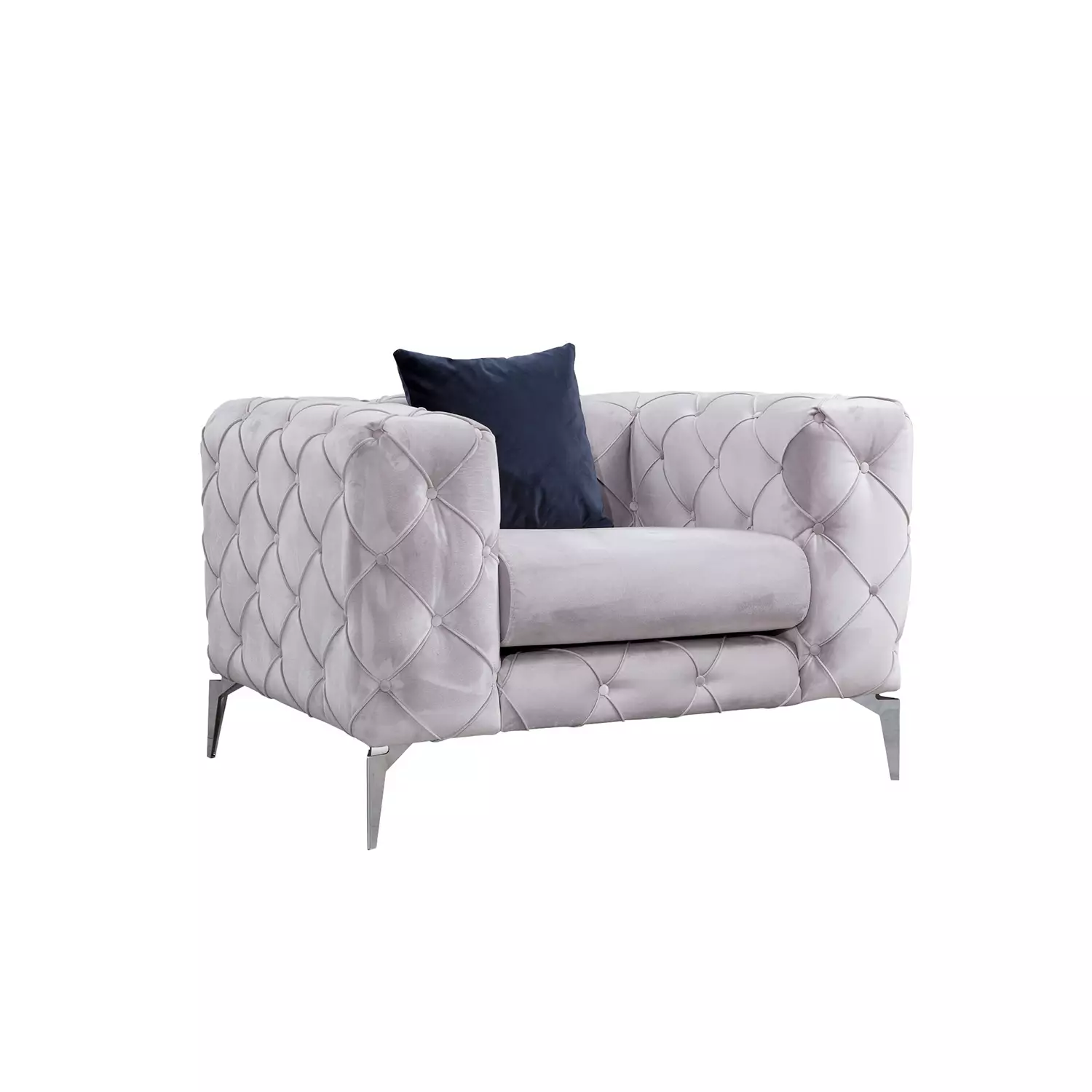 Upota itsesi 5 cm harmaisiin vaahtomuovi- ja höyhenityynyihin, jotka on suunniteltu tarjoamaan äärimmäistä mukavuutta ja tukea. Kiinteä selkätyyny ja kannettava istuintyyny tarjoavat täydellisen tasapainon rentoutumisen ja tyylin välillä. Mukana tuleva tyyny lisää ylimääräisen luksuksen kosketuksen tähän jo valmiiksi upeaan tuotteeseen.