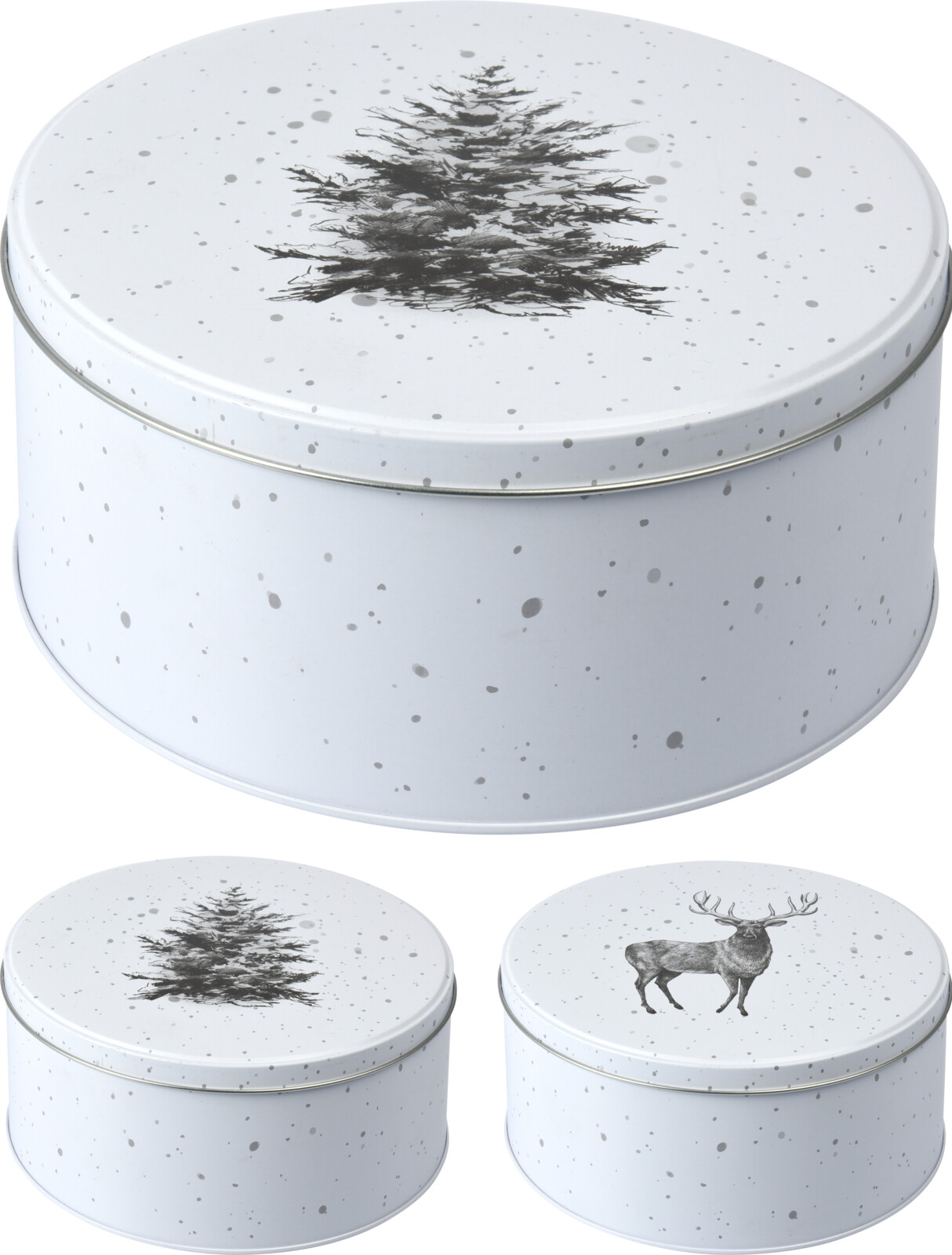 Kuvioitu jouluinen peltirasia. Sopii hyvin esim. keksirasiaksi.