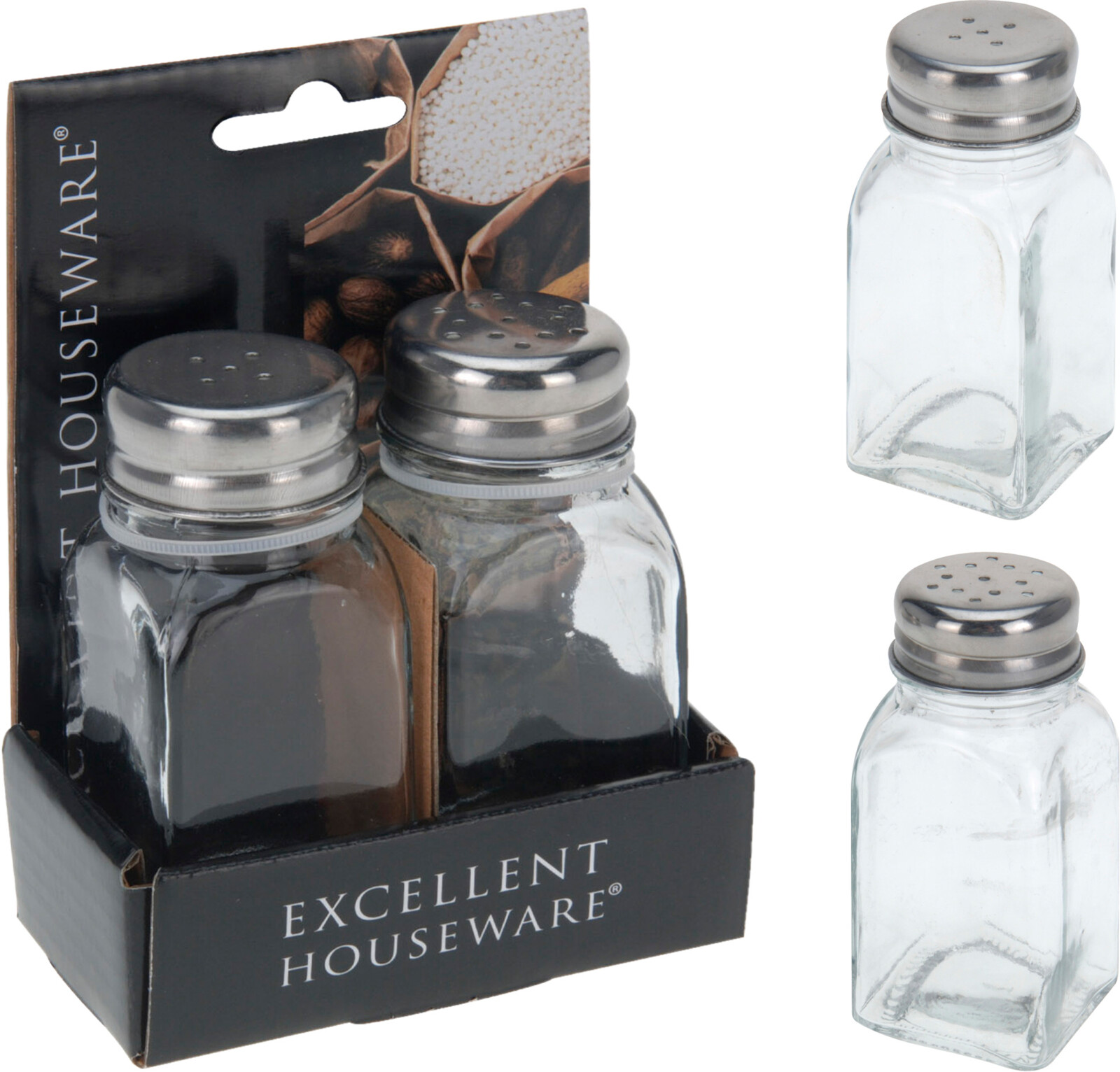 Tyylikäs pippuri-ja suolasiroitinsetti.