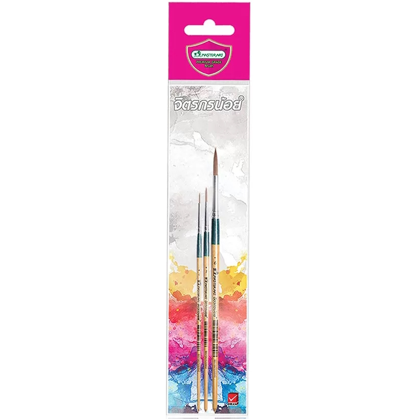 Setti sisältää 3 pyöreää sivellintä (koot 0, 2, 6) tarkkaan ja monipuoliseen työskentelyyn. Laadukas keinokuitu, ruostumattomat holkit ja vedenkestävät lakatut varret.