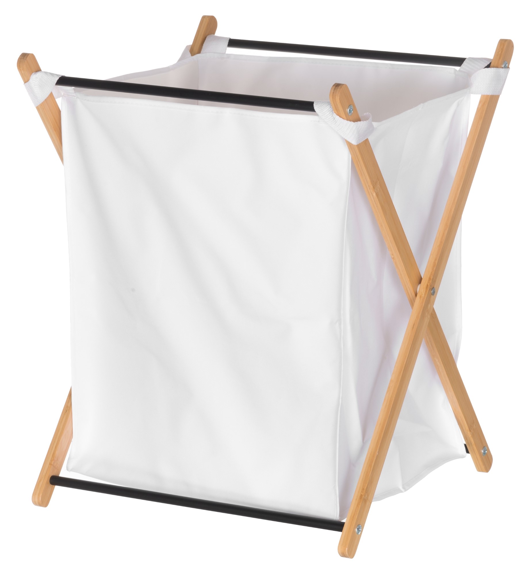 Tyylikäs ja käytännöllinen pyykkikori bamburungolla. Taitettavan rungon ansiosta tyhjän pyykkikorin säilyttäminen poissa silmistä on helppoa.
