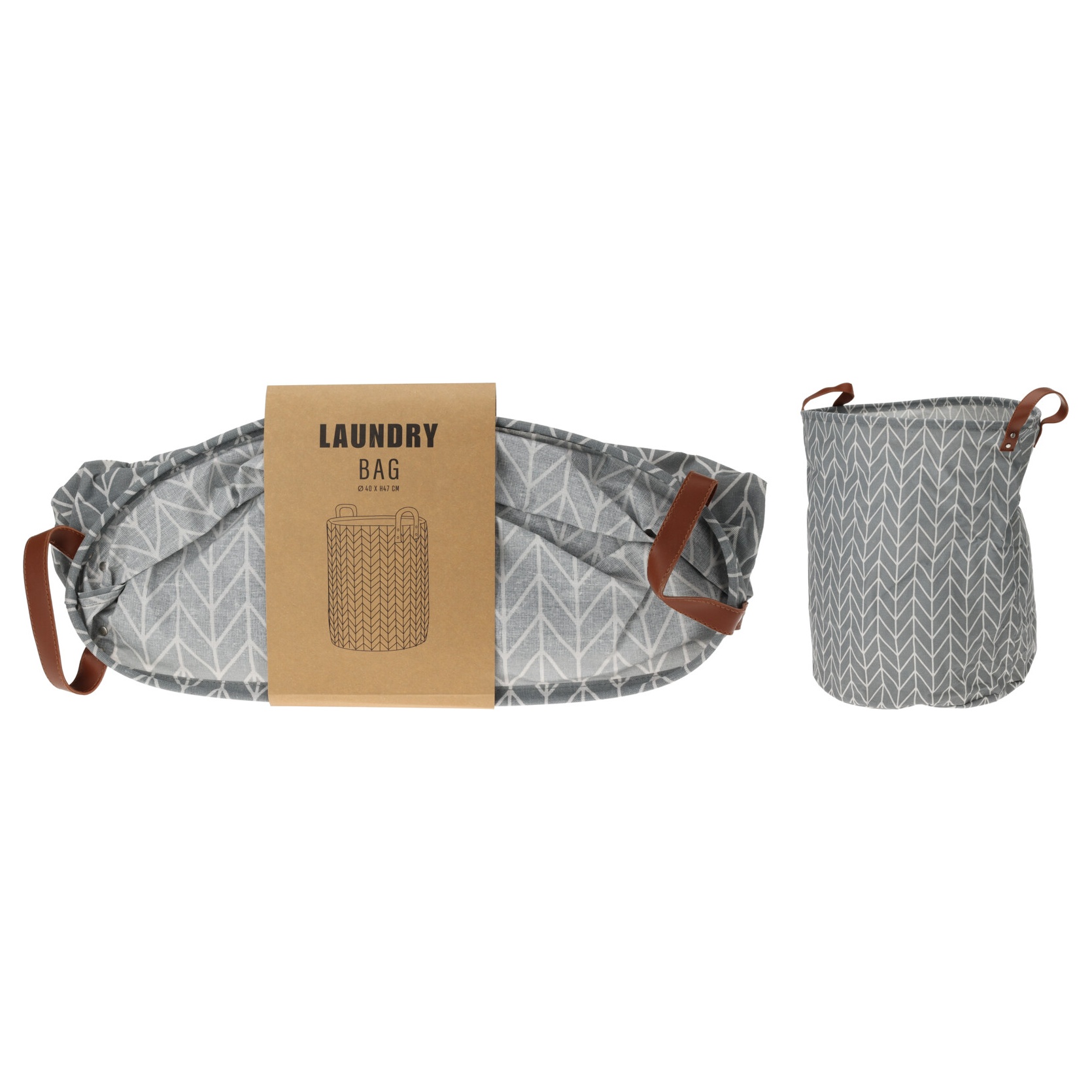 Pyykkisäkki, polyesteriä, koko: 40xH47 cm, kahdella PU-kahvalla.