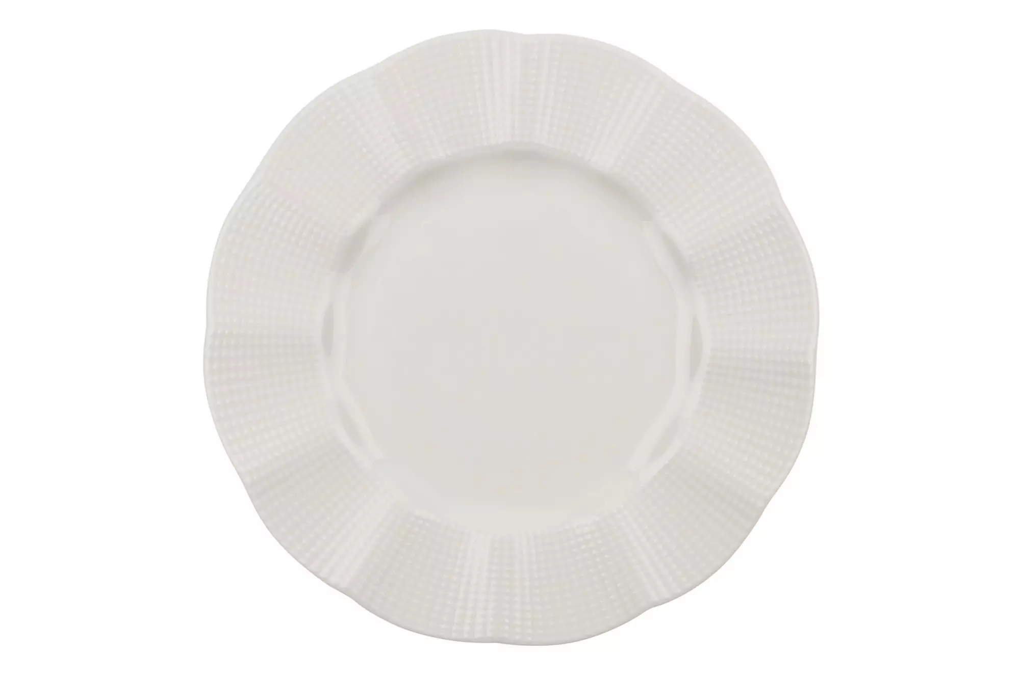 Tässä astiastossa on kuusi tarjoilulautasta, kuusi lautasta ja kuusi jälkiruokalautasta, joten siinä on kaikki, mitä tarvitset upean pöydän kattauksen luomiseen. Tyylikäs ja minimalistinen muotoilu yhdistettynä puhtaaseen valkoiseen väriin kohottaa vaivattomasti minkä tahansa ruokailutilaisuuden tunnelmaa.