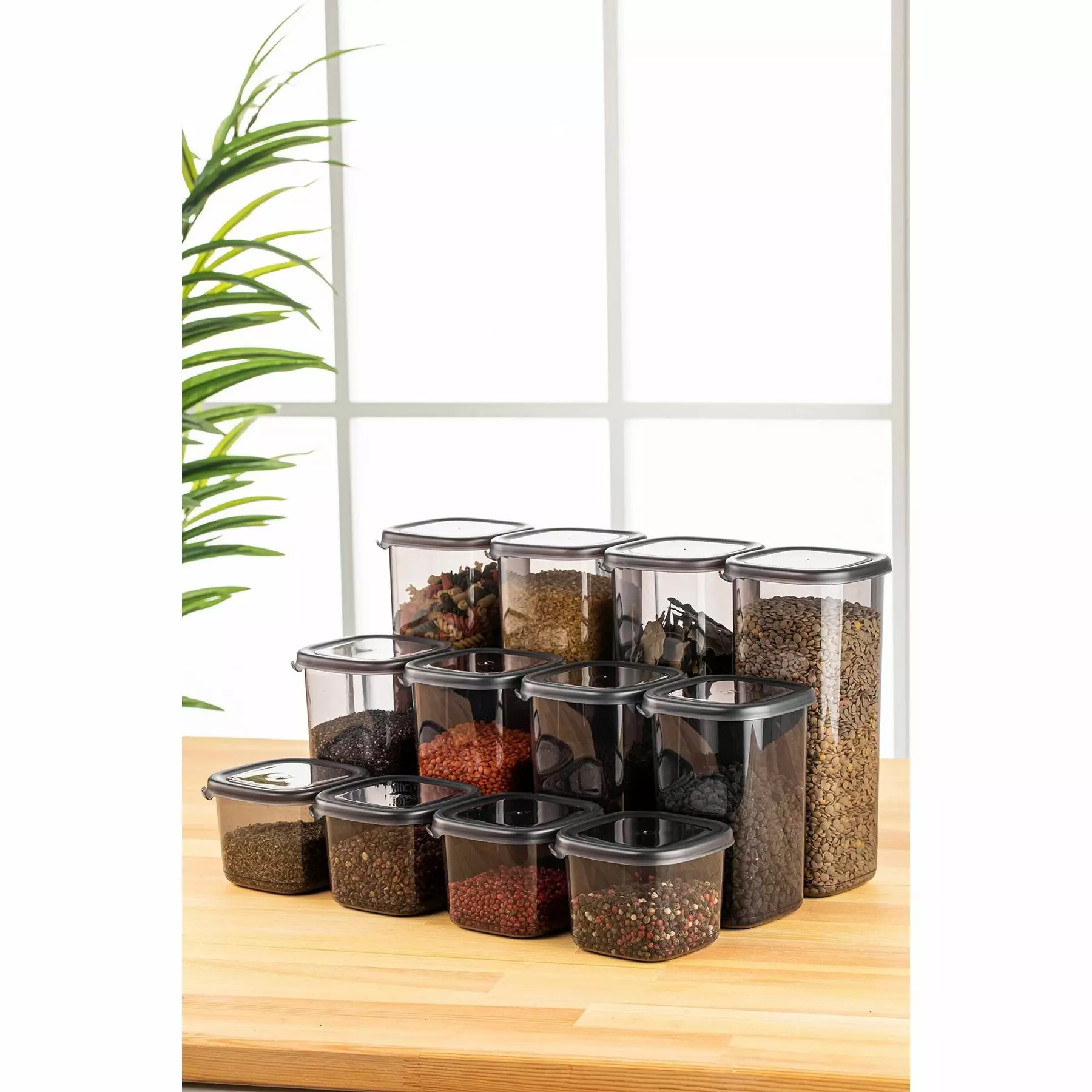 Säilytyslaatikko-setti (12 osaa), antrasiitti, 10 x 10 x 9,5 cm / 550 ml, kestävä, tyylikäs, monikäyttöinen