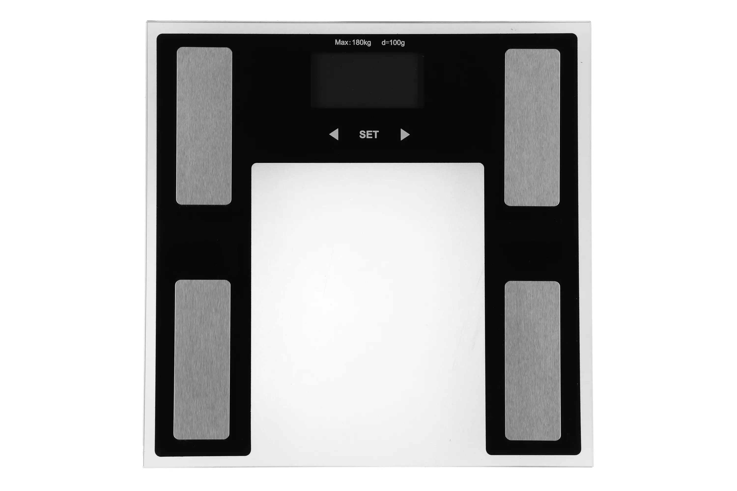 Eletroninen vaaka, mittausalue 3-180 kg / 2,2-396 lb. Näyttää painon lisäksi kehon rasva- ja vesipitoisuuden, lihas- ja luumassan määrän sekä kalorisuosituksen. 10 muistipaikkaa. Paristot 2 x AAA 1,5V eivät sisälly pakkaukseen.
