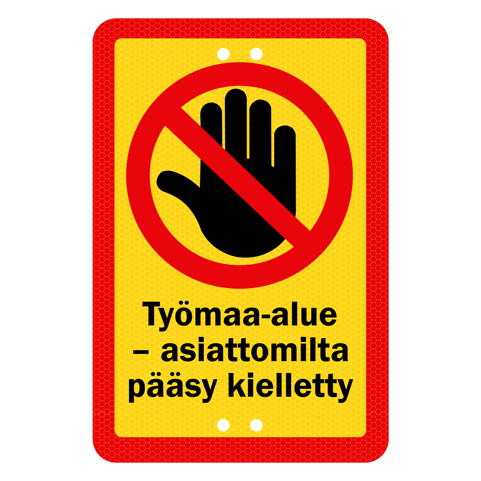 - Teksti: "Työmaa-alue - asiattomilta pääsy kielletty"
