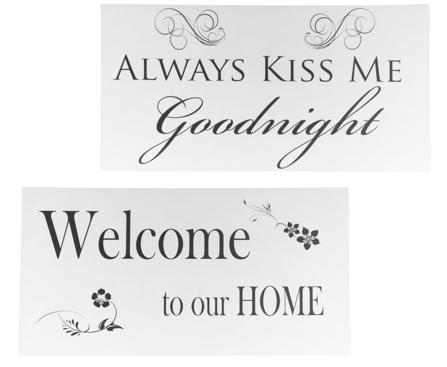 3 erilaista: Always kiss me goodnight/Welcome to our home/Live Love Laugh.