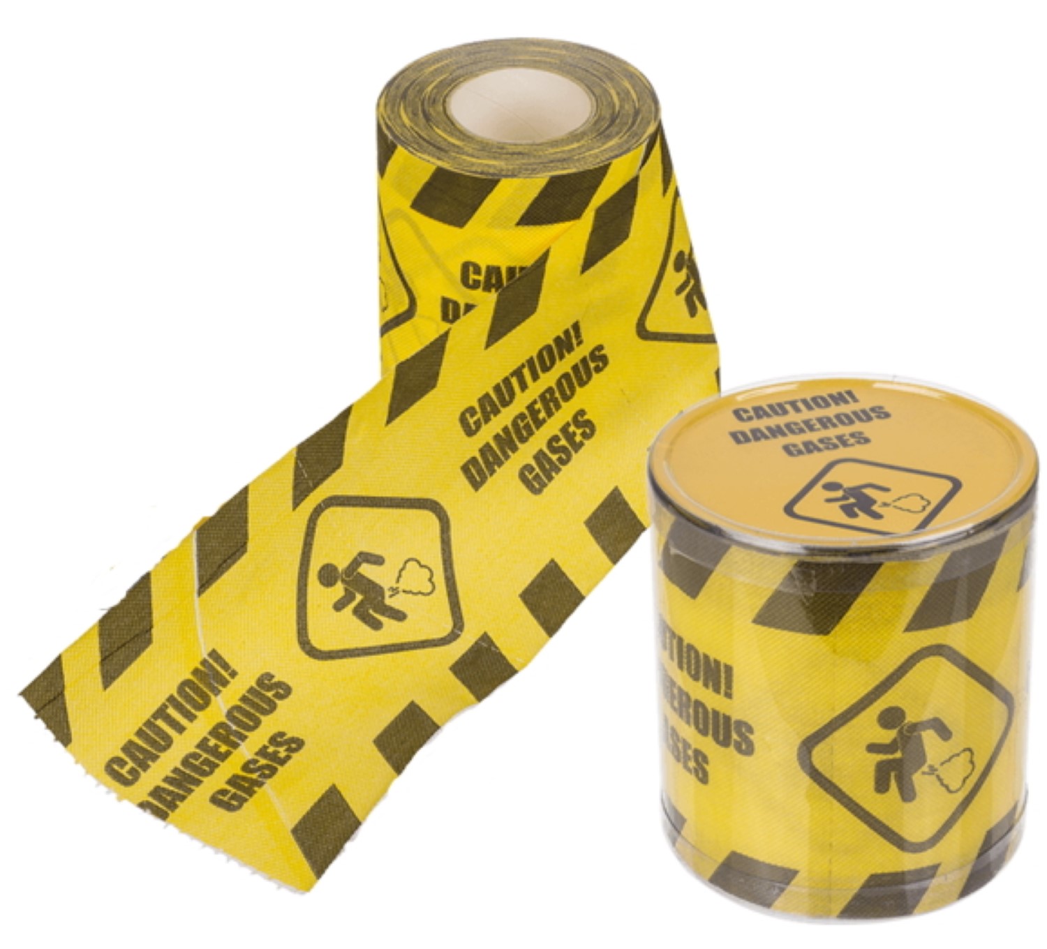 Melko epätavallinen wc-paperi, joka varmasti parantaa mielialaasi wc: ssä. Koko kela on painettu varoitusmerkeillä ja merkinnällä: Varoitus! Vaaralliset kaasut. Paperi hauska lahja ihmisille, joilla on hyvä huumorintaju.