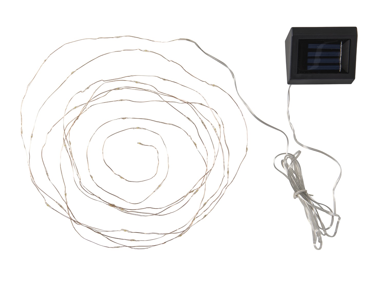 Solar-valolankasarja hämäräkytkimellä. Helposti aseteltava, kieputettava tai eri muotoihin taipuva led-sarja, joka on helppo asetella koristeeksi mihin tahansa pihalla tai terassilla. Led lämmin valkoinen, ei vaihdettava. Materiaali metalli ja muovi. Johto hopea (sisällä kuparilanka) ja paristokotelon johto kirkas. Kenno-osassa on/off-kytkin. Mukana vaihdettava ja ladattava paristoakku. Pimeimpinä talvikuukausina päivänvalo ei välttämättä riitä aurinkokennon latautumiseen. Mukana vaihdettava ja ladattava paristoakku. Pimeimpinä talvikuukausina päivänvalo ei välttämättä riitä aurinkokennon latautumiseen.