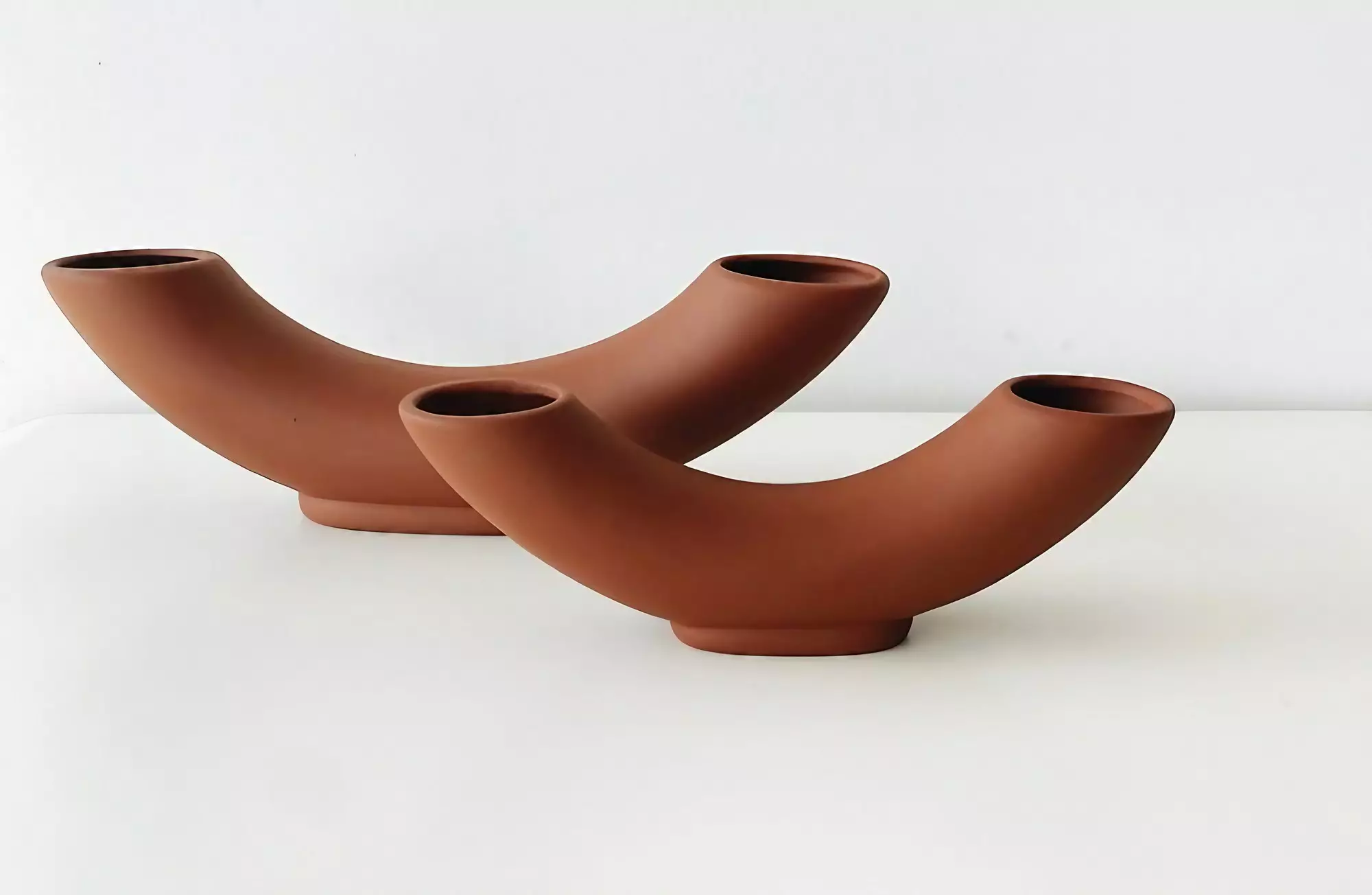 Vase Setti - Koriste - Laatta Punainen - 100% Keraaminen - Koko: 27x4x8 cm & 36x5x10 cm - Tyylikäs Sisustusratkaisu