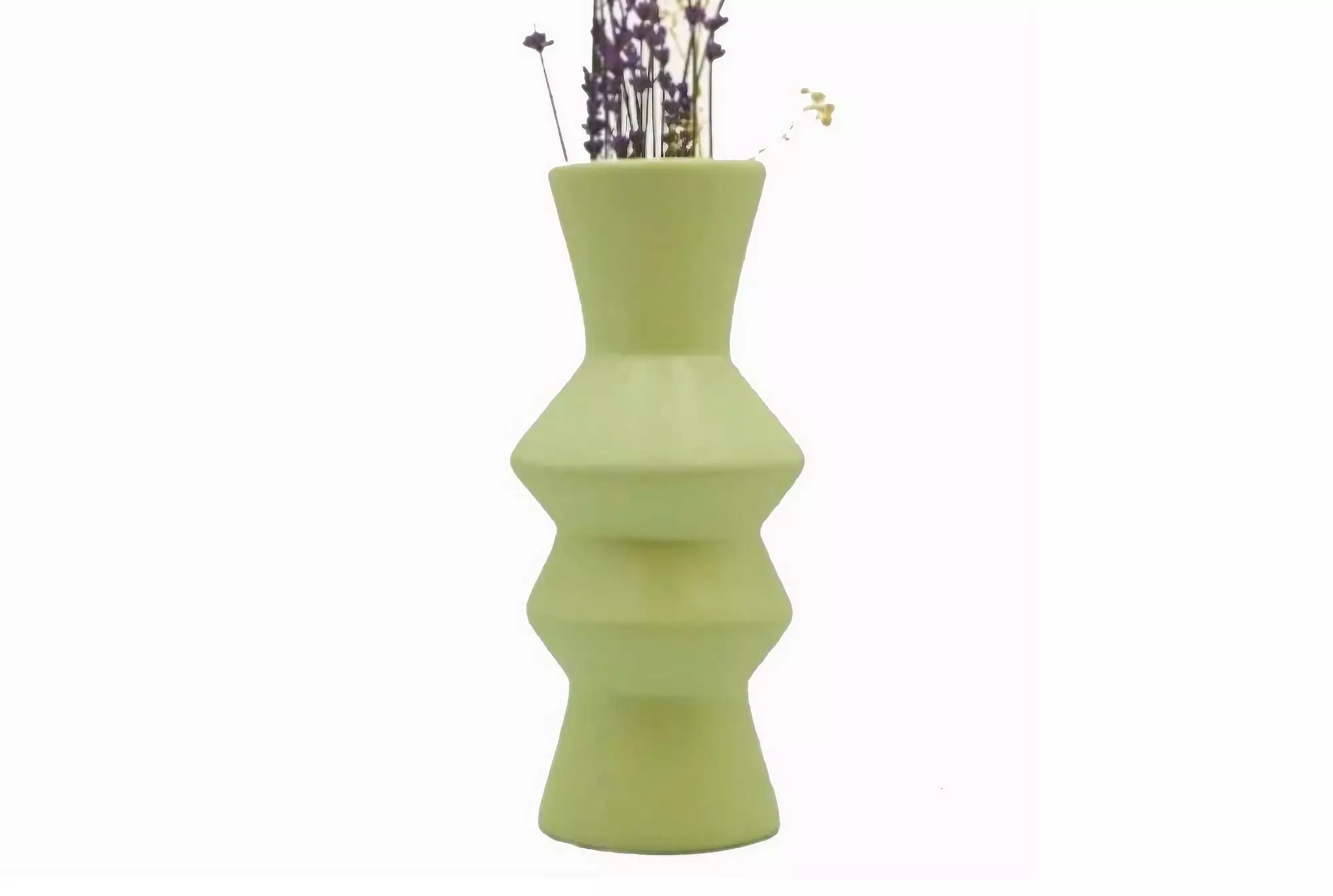 Vihreä Keraaminen Maljakko - 100% Keraaminen, 11x29x11 cm - Tyylikäs Sisustuselementti Kotiin ja Lahjaksi